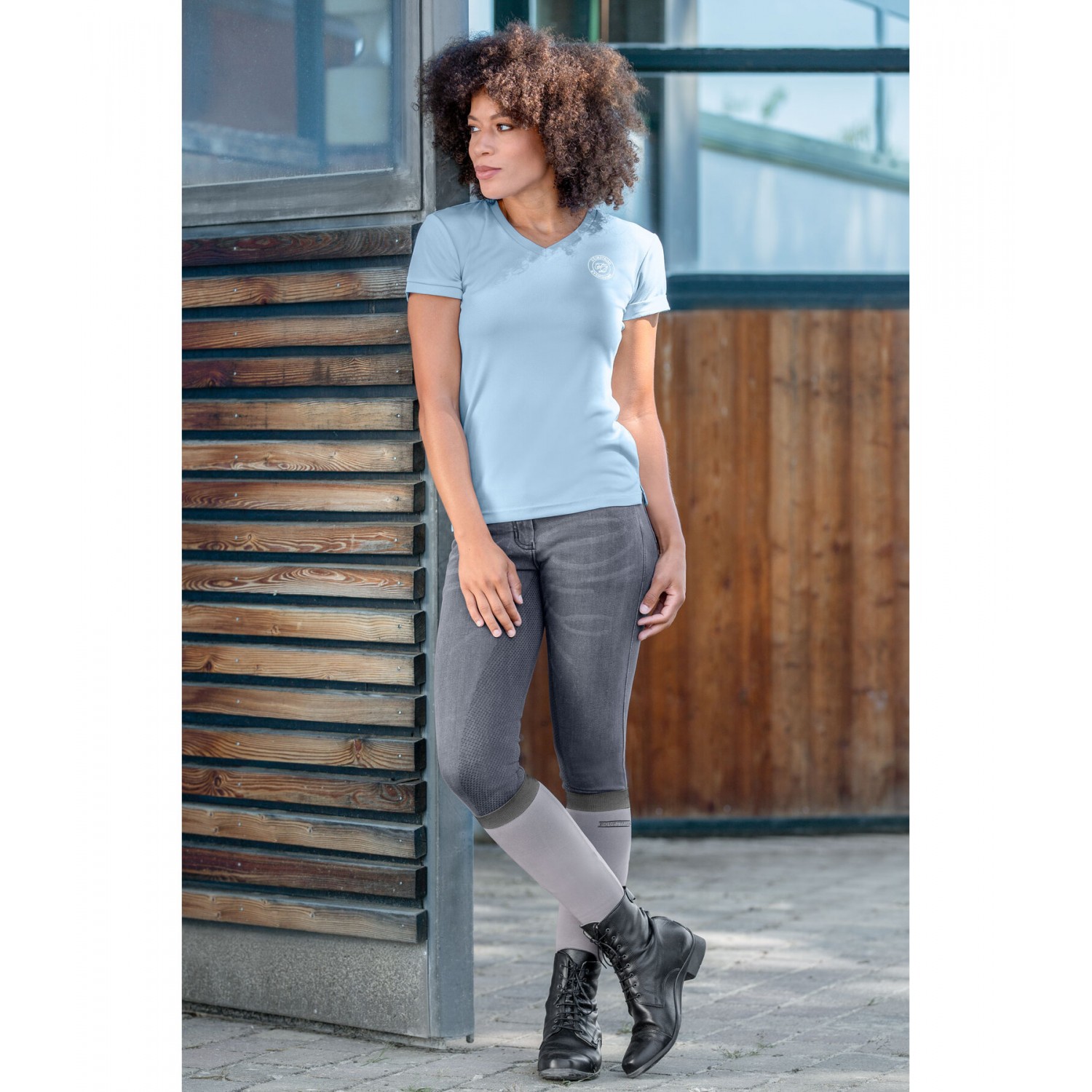 Спортивная футболка-поло с V-образным вырезом. Изготовлена из дышащего и быстросохнущего функционального материала. Вышивка на груди. 100% полиэстер.