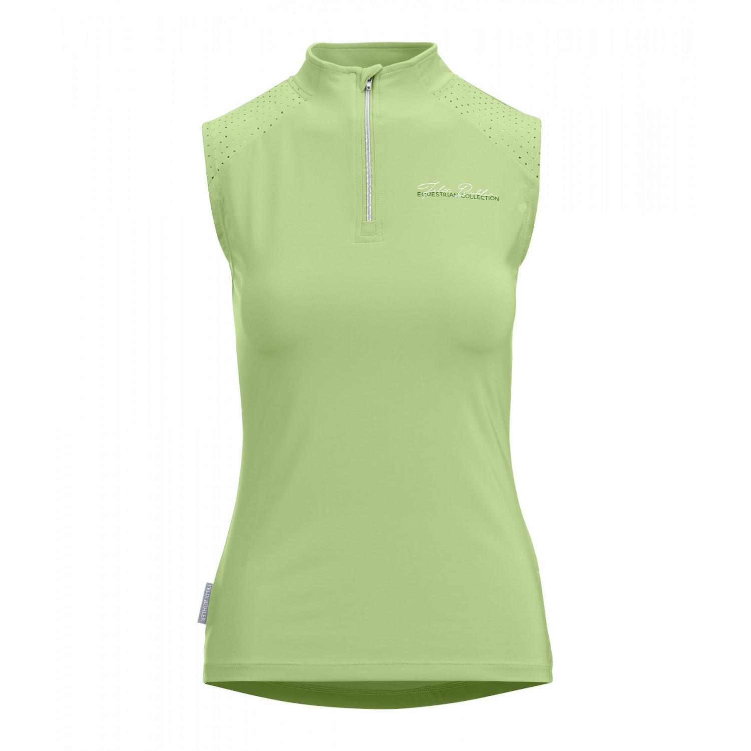 Спортивная футболка без рукавов, со стоячим воротником, застежкой-молнией и защитой подбородка. Оптимальная вентиляция благодаря функциональной перфорации в области плеч и верхней части спины. Дышащая и быстросохнущая. С логотипом. 88% полиэстер, 12% эластан.
