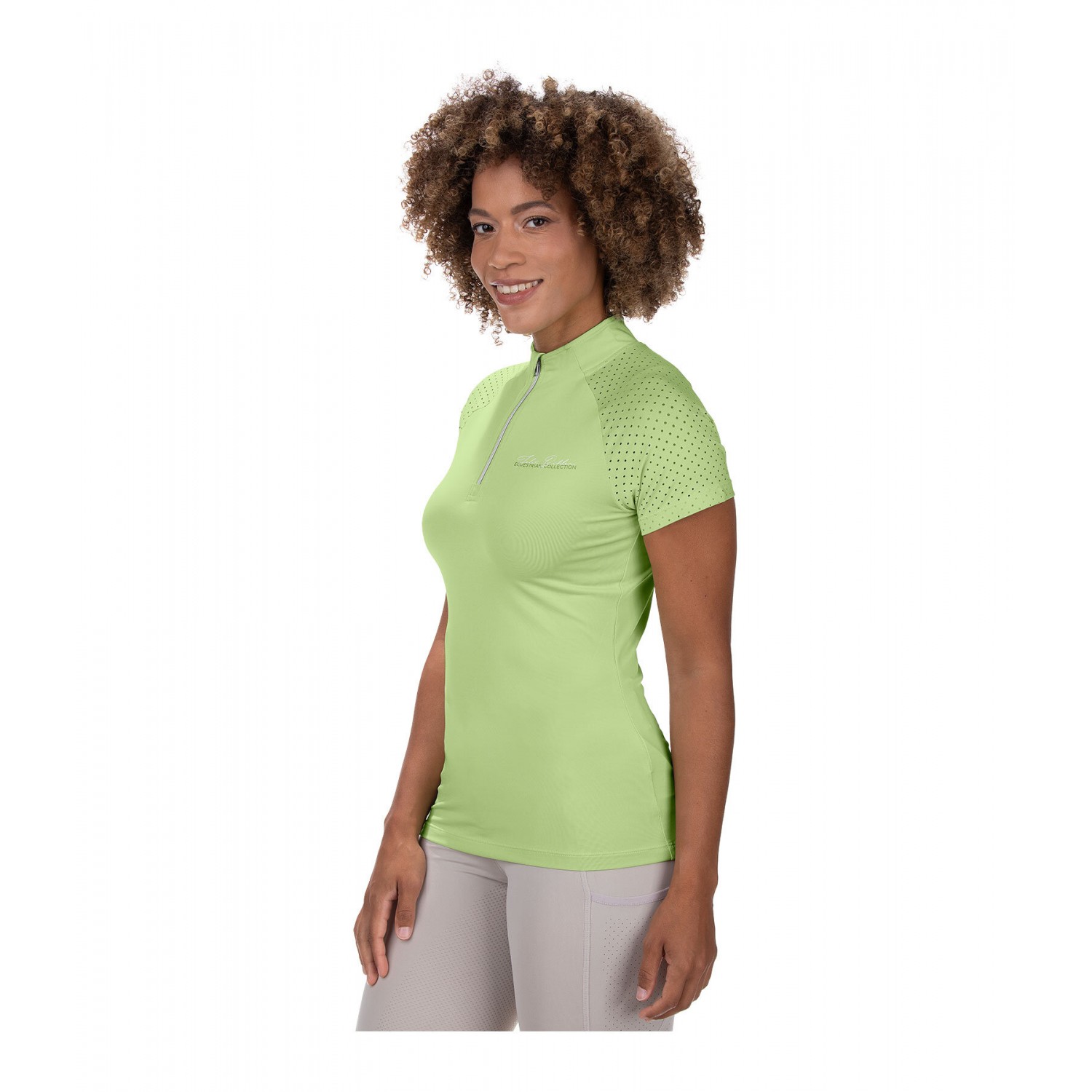 Эта спортивная, дышащая и быстросохнущая футболка с коротким рукавом обеспечивает оптимальную вентиляцию благодаря лазерной перфорации на рукавах реглан и верхней части спины. Она украшена логотипом, имеет воротник-стойку на молнии и защиту подбородка. Состав: 88% полиэстер, 12% эластан.