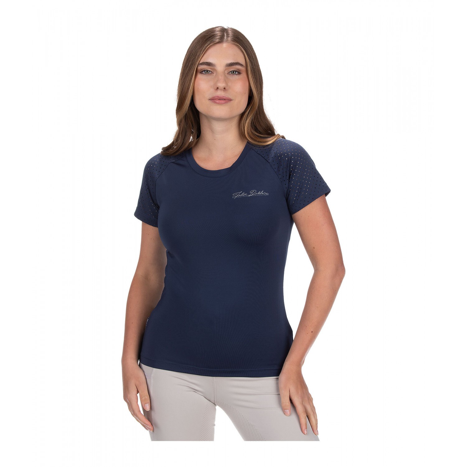 Дышащая и быстросохнущая футболка с круглым вырезом. Короткие рукава реглан обеспечивают оптимальную вентиляцию благодаря лазерной перфорации. 88% полиэстер, 12% эластан.