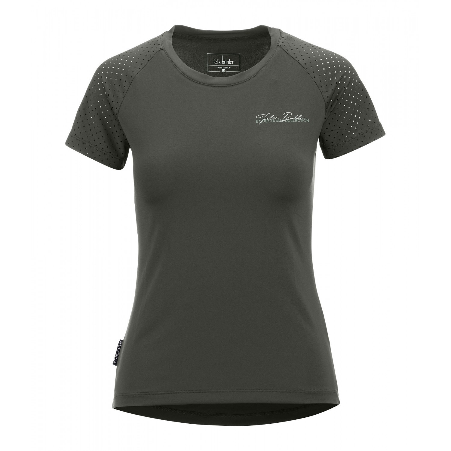 Дышащая и быстросохнущая футболка с круглым вырезом. Короткие рукава реглан обеспечивают оптимальную вентиляцию благодаря лазерной перфорации. 88% полиэстер, 12% эластан.