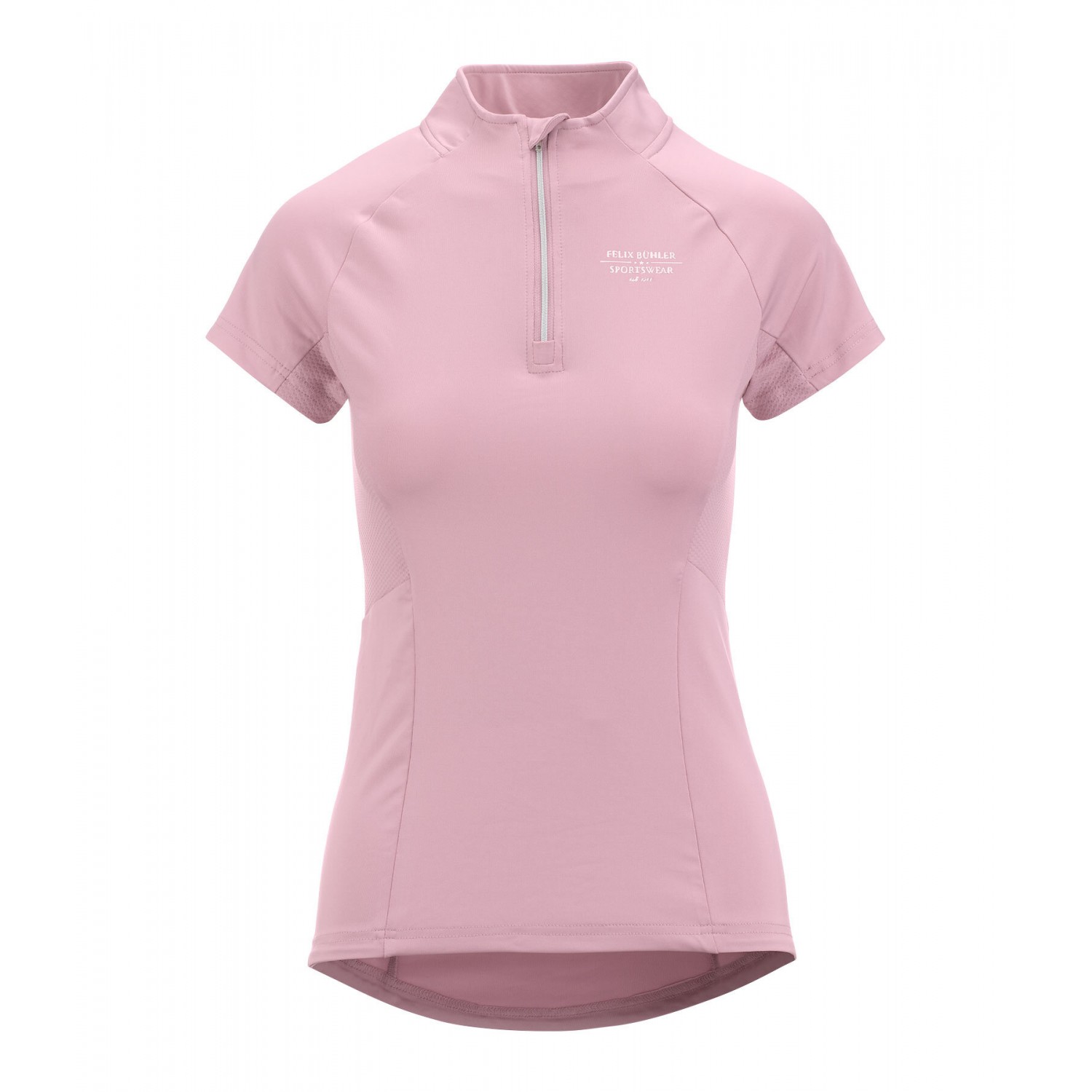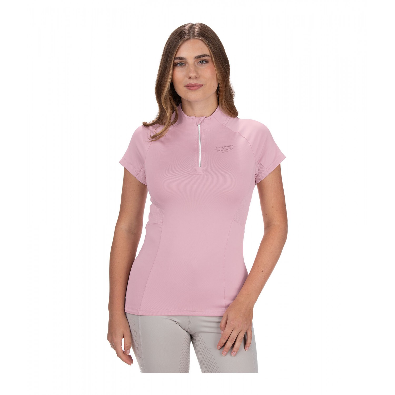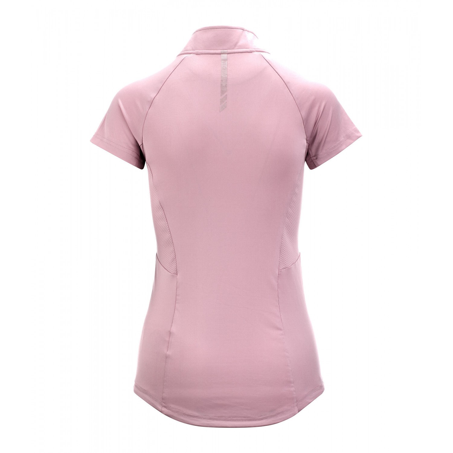 Эластичная и мягкая футболка на молнии с люрексом и воротником-стойкой. Отличная воздухопроницаемость благодаря боковым сетчатым вставкам. Быстросохнущая. 88% полиэстер, 12% эластан.