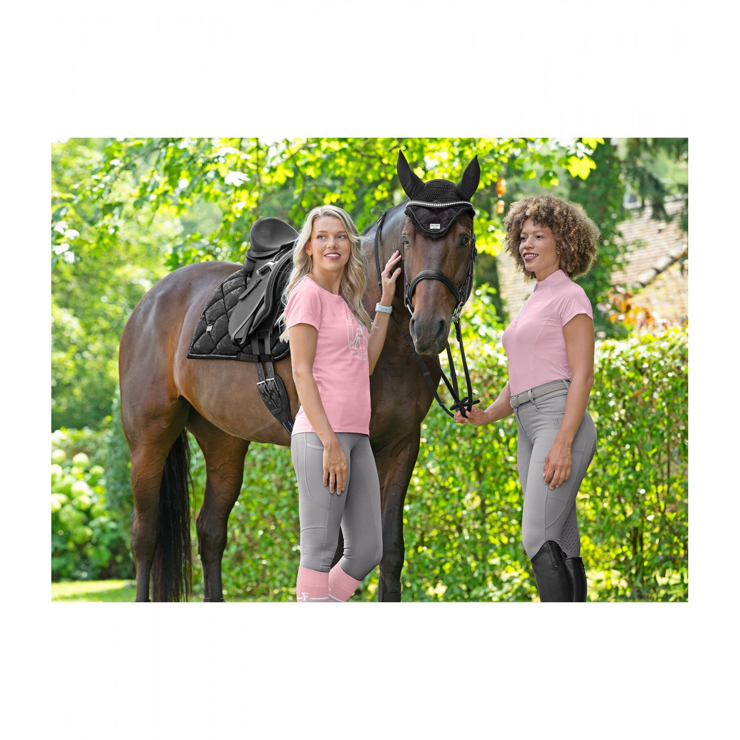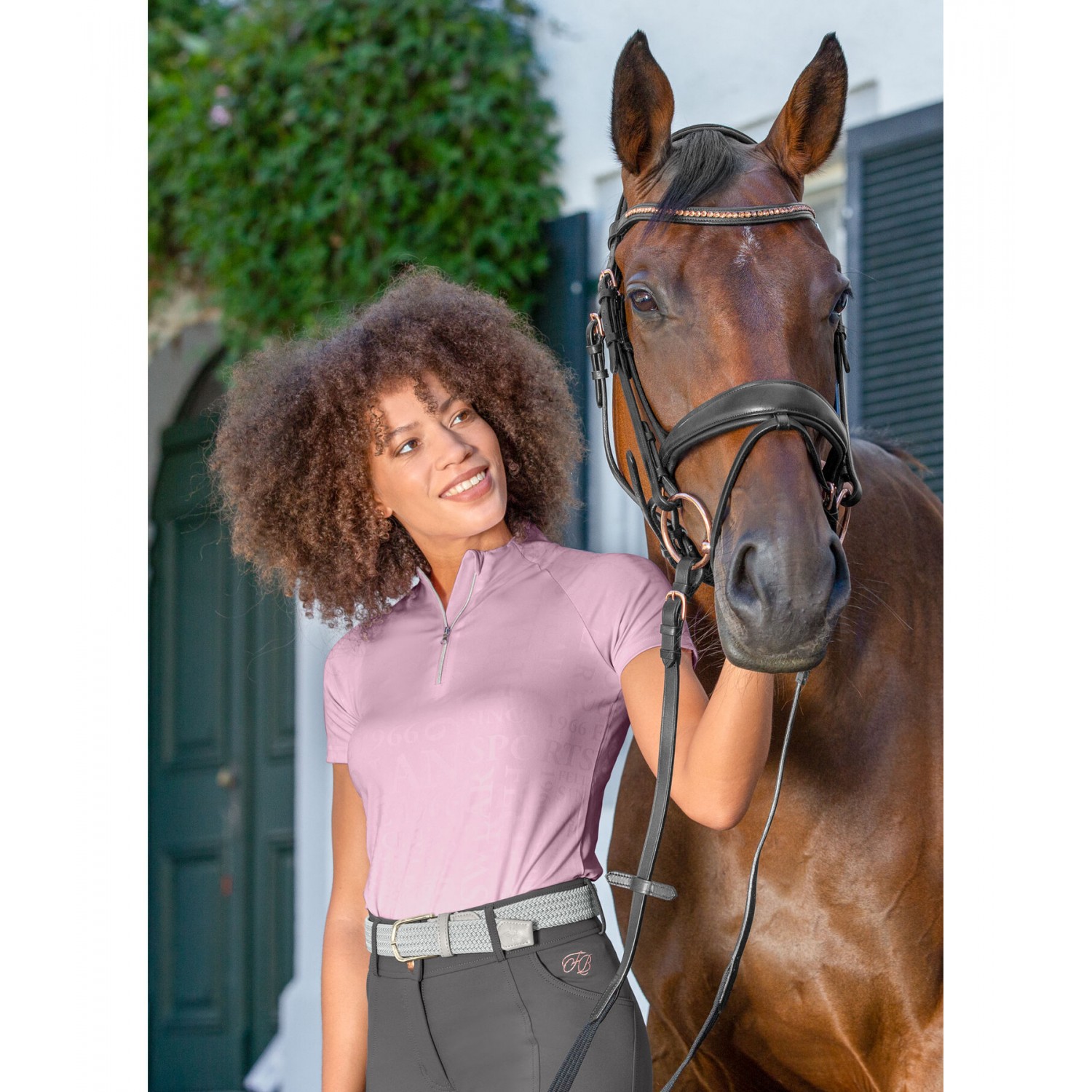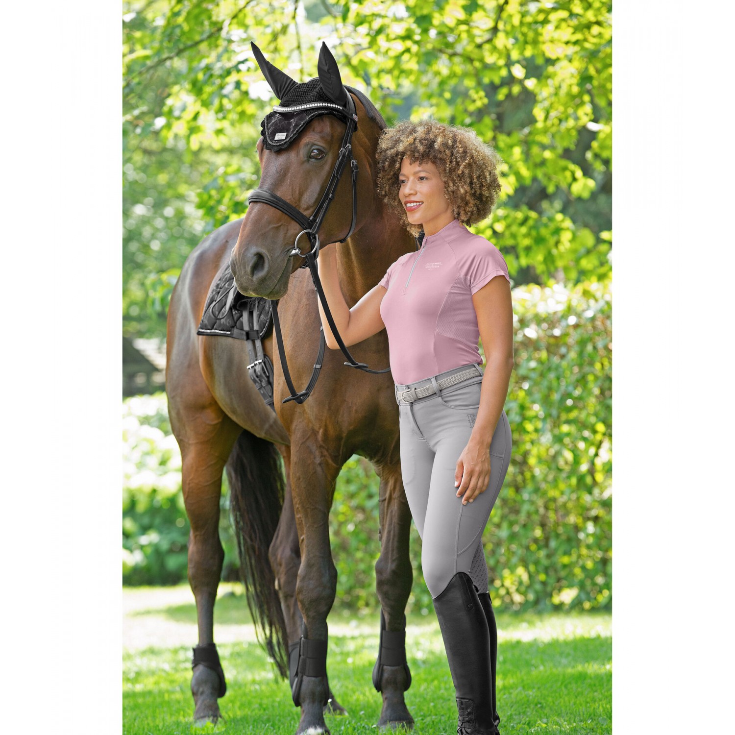 Эластичная и мягкая футболка на молнии с люрексом и воротником-стойкой. Отличная воздухопроницаемость благодаря боковым сетчатым вставкам. Быстросохнущая. 88% полиэстер, 12% эластан.