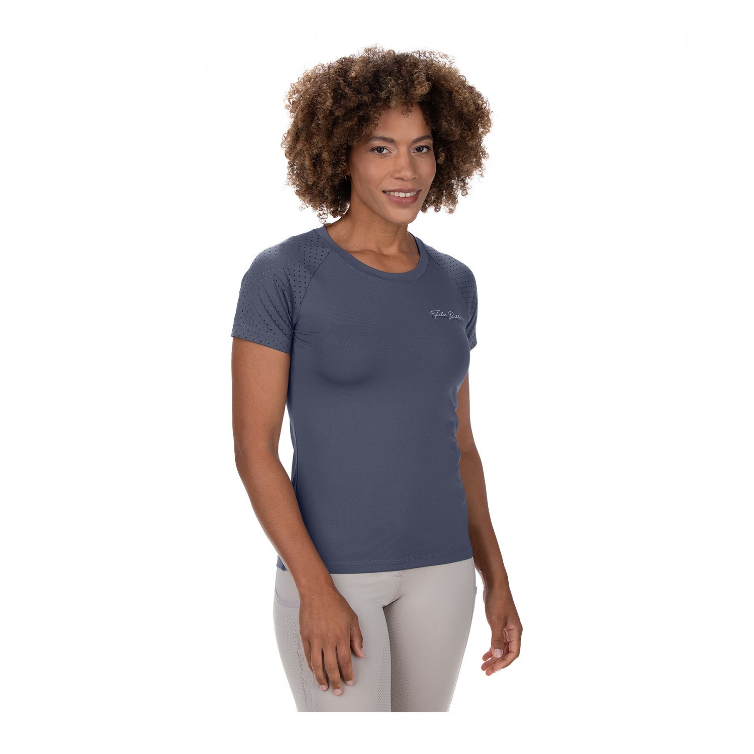 Дышащая и быстросохнущая футболка с круглым вырезом. Короткие рукава реглан обеспечивают оптимальную вентиляцию благодаря лазерной перфорации. 88% полиэстер, 12% эластан.