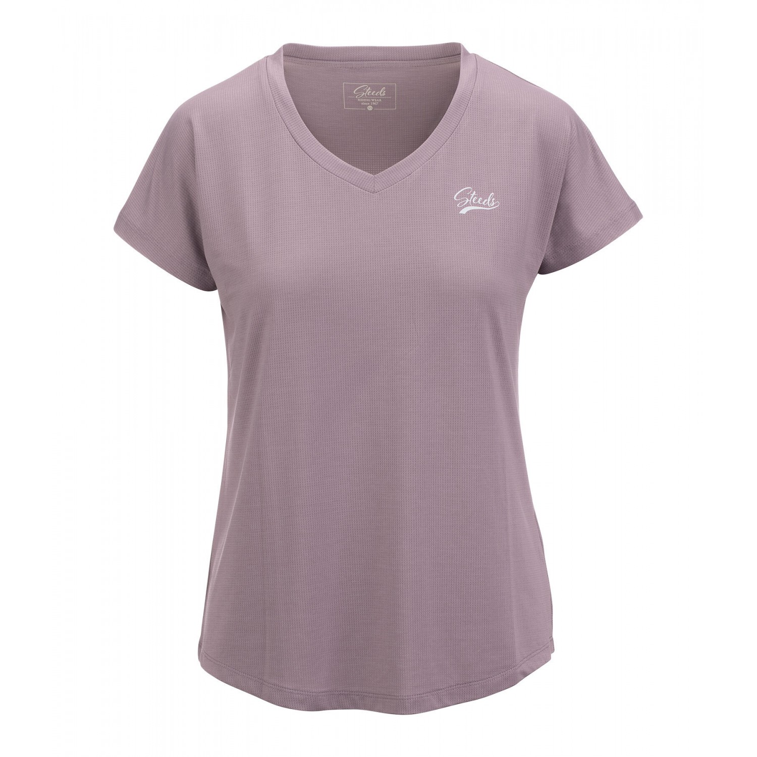 Великолепная, супер удобная летняя футболка из особенно воздушного, мягкого функционального материала в меланжевом стиле. Принт STEEDS на груди. 59% полиамид, 31% полиэстер, 10% эластан.