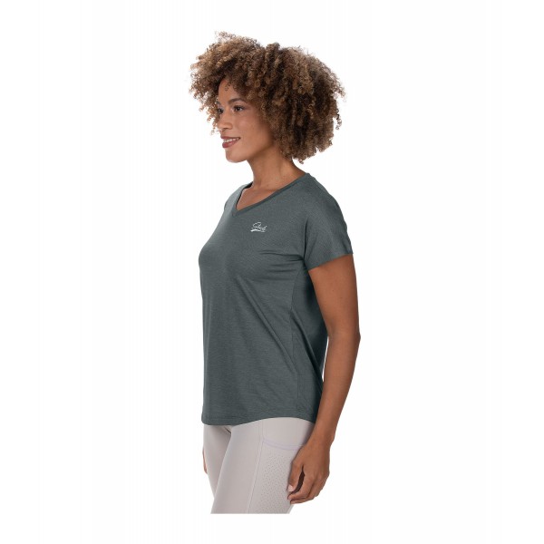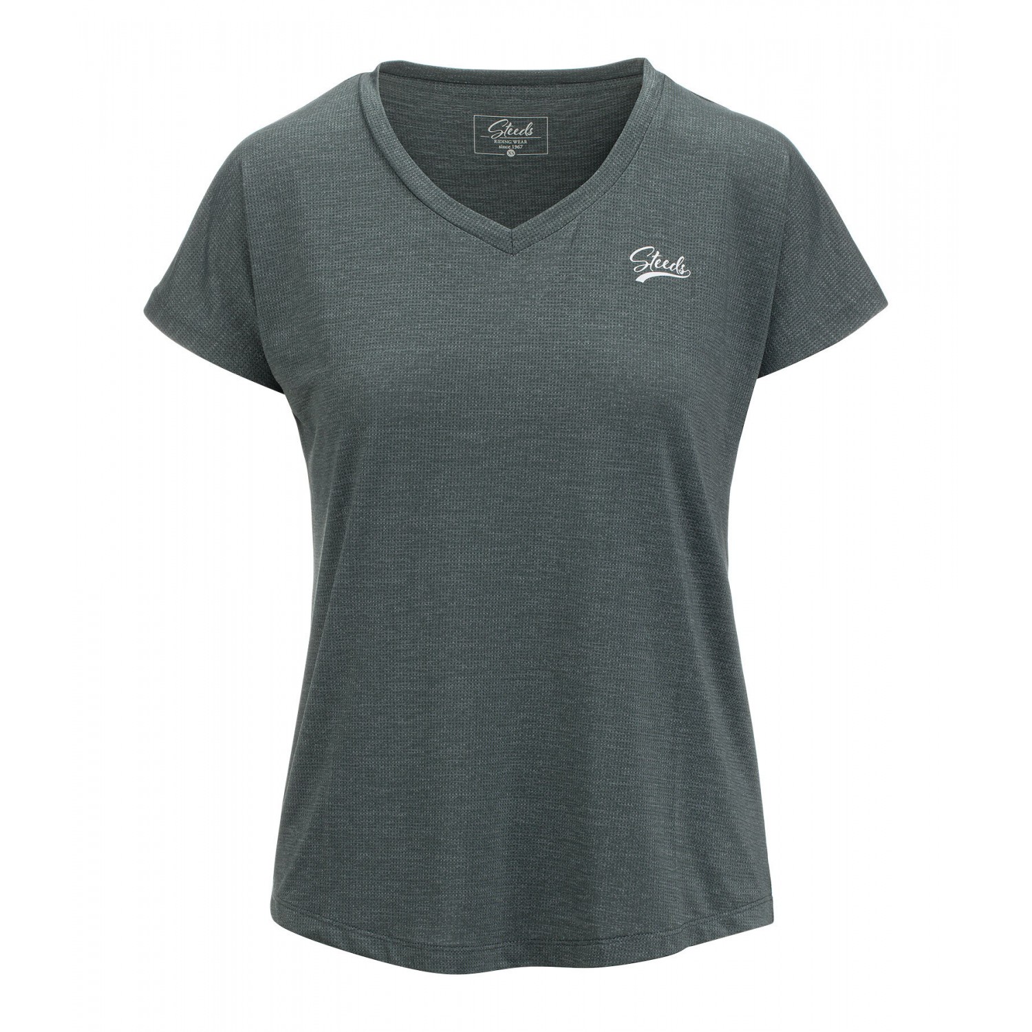 Великолепная, супер удобная летняя футболка из особенно воздушного, мягкого функционального материала в меланжевом стиле. Принт STEEDS на груди. 59% полиамид, 31% полиэстер, 10% эластан.