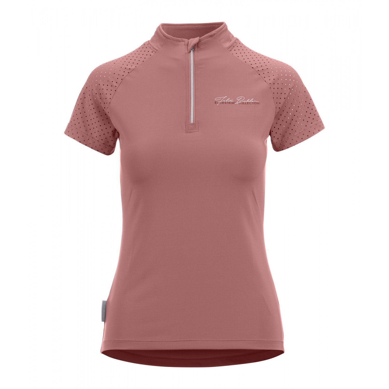 Эта спортивная, дышащая и быстросохнущая футболка с коротким рукавом обеспечивает оптимальную вентиляцию благодаря лазерной перфорации на рукавах реглан и верхней части спины. Она украшена логотипом, имеет воротник-стойку на молнии и защиту подбородка. Состав: 88% полиэстер, 12% эластан.