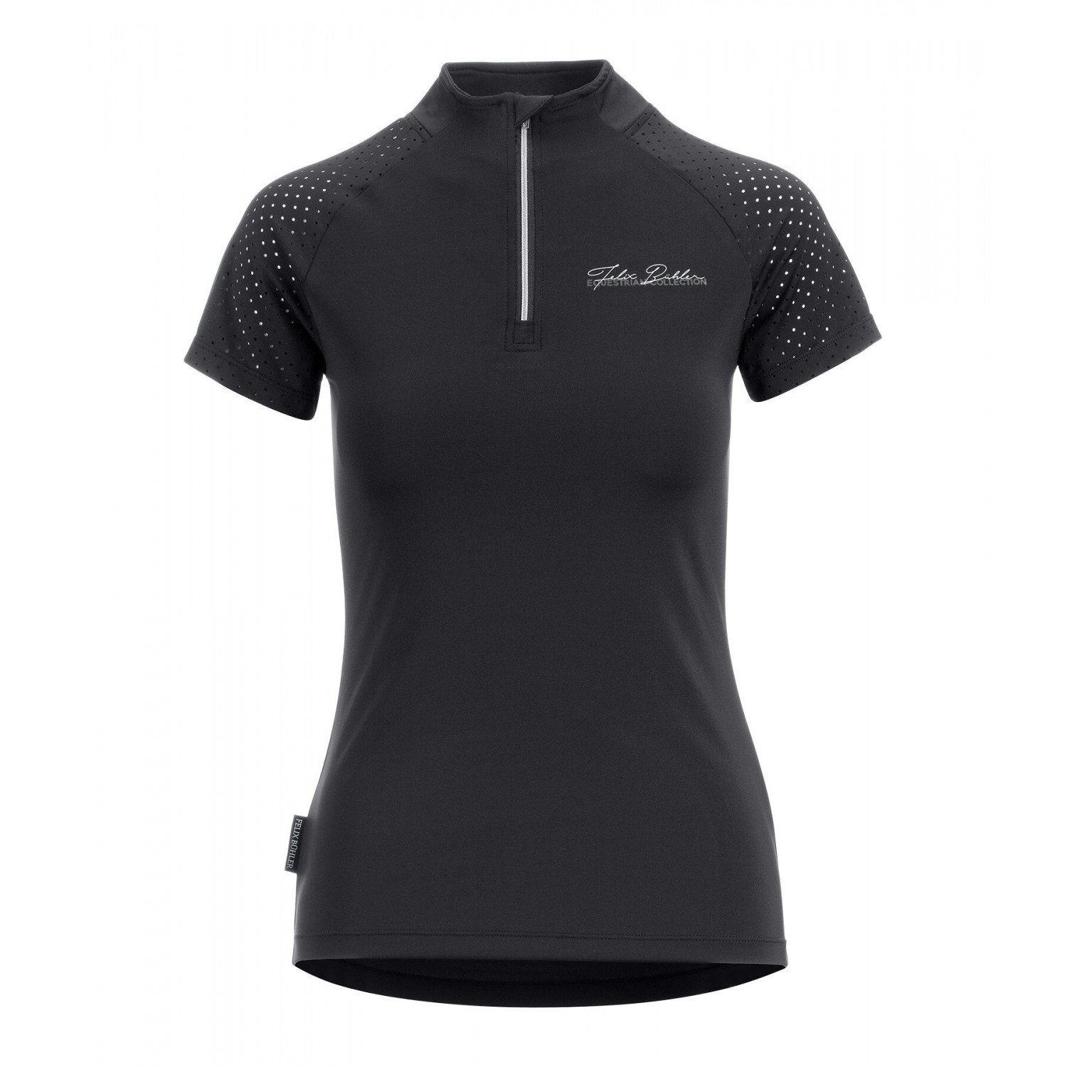 Эта спортивная, дышащая и быстросохнущая футболка с коротким рукавом обеспечивает оптимальную вентиляцию благодаря лазерной перфорации на рукавах реглан и верхней части спины. Она украшена логотипом, имеет воротник-стойку на молнии и защиту подбородка. Состав: 88% полиэстер, 12% эластан.