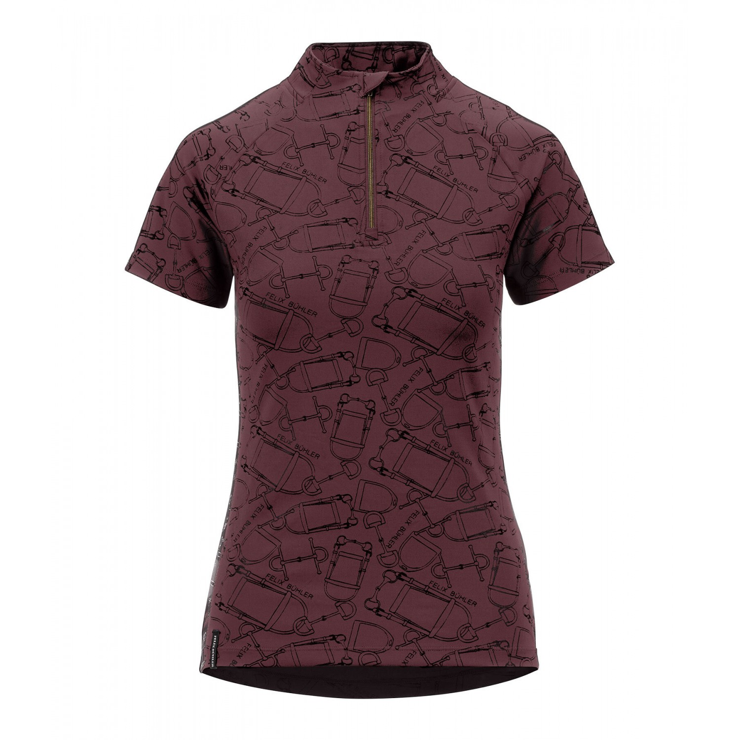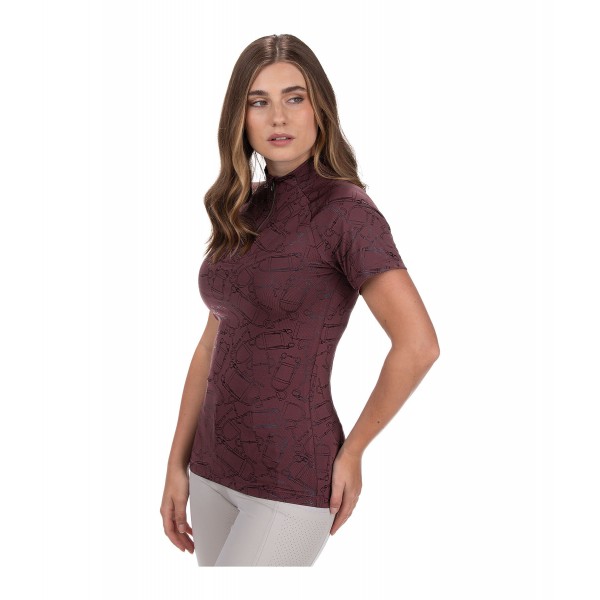 Стильная спортивная футболка с металлизированным принтом по всей поверхности. Имеет рукава реглан, воротник-стойку на молнии и защиту подбородка. Дышащая и быстросохнущая. 88% полиэстер, 12% эластан.