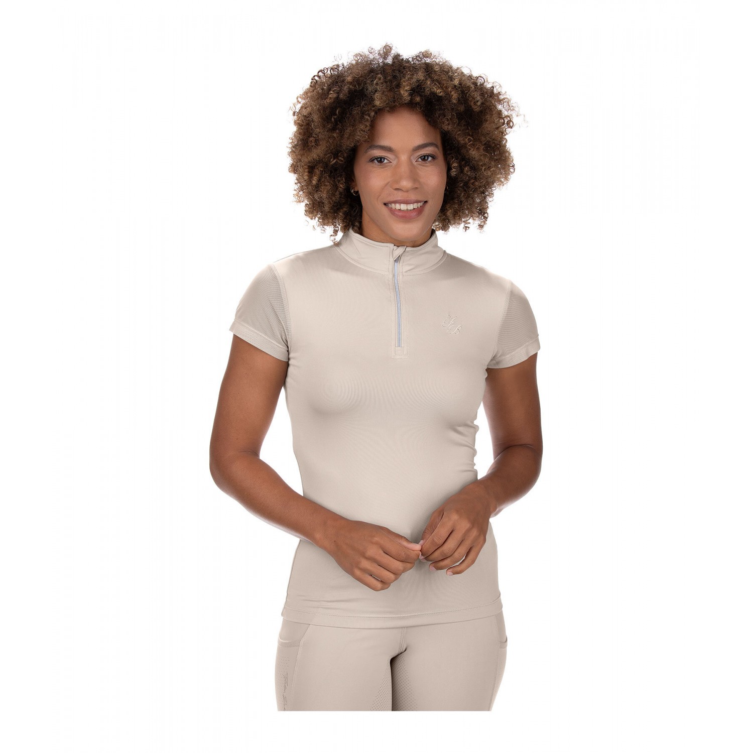 Дышащая и быстросохнущая футболка с короткими сетчатыми рукавами, воротником-стойкой на молнии и защитой подбородка. Вышивка логотипа на груди. 88% полиэстер, 12% эластан, сетчатая ткань 100% полиэстер.