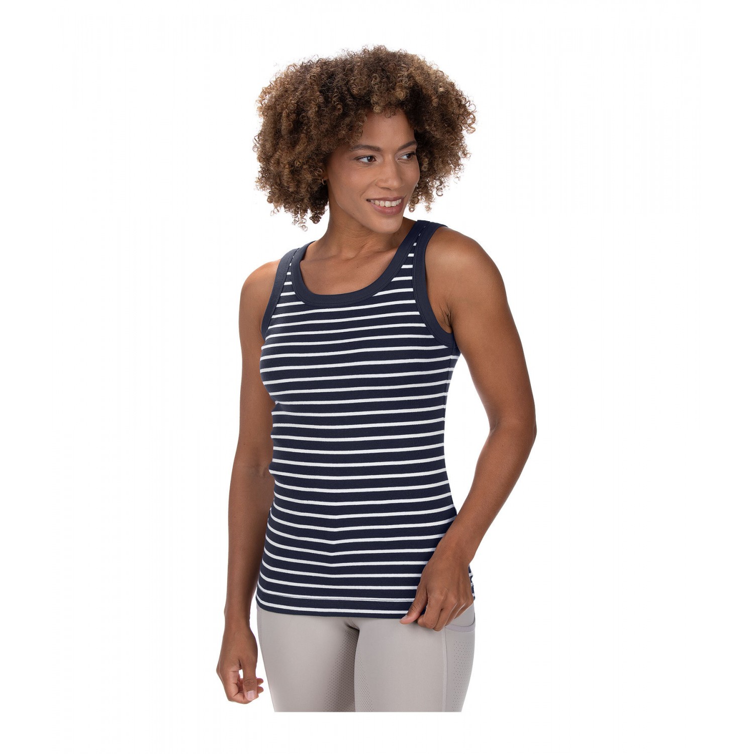 Облегающая майка в полоску. Круглый вырез горловины из мягкого трикотажа. 96% хлопок, 4% эластан.