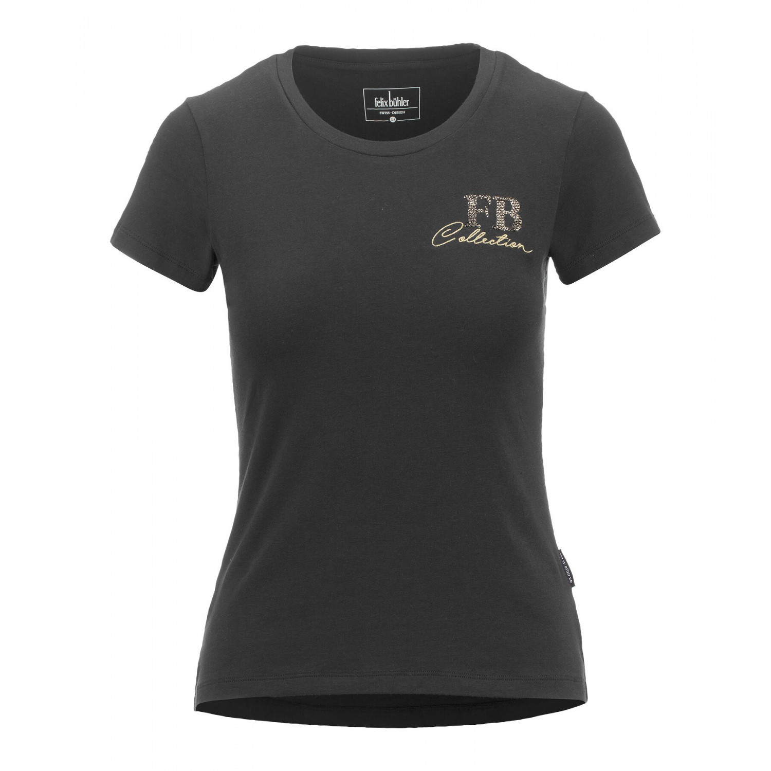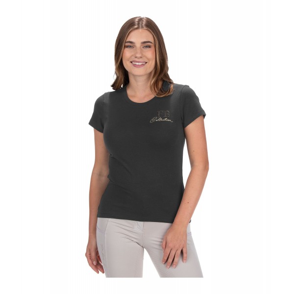 Супермягкая футболка с круглым вырезом из эластичного трикотажа из модала и хлопка. Логотип вышит пайетками и блестящей нитью на груди. Состав: 48% хлопок, 47% модал, 5% эластан.