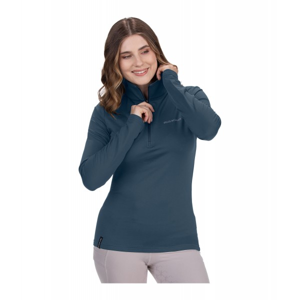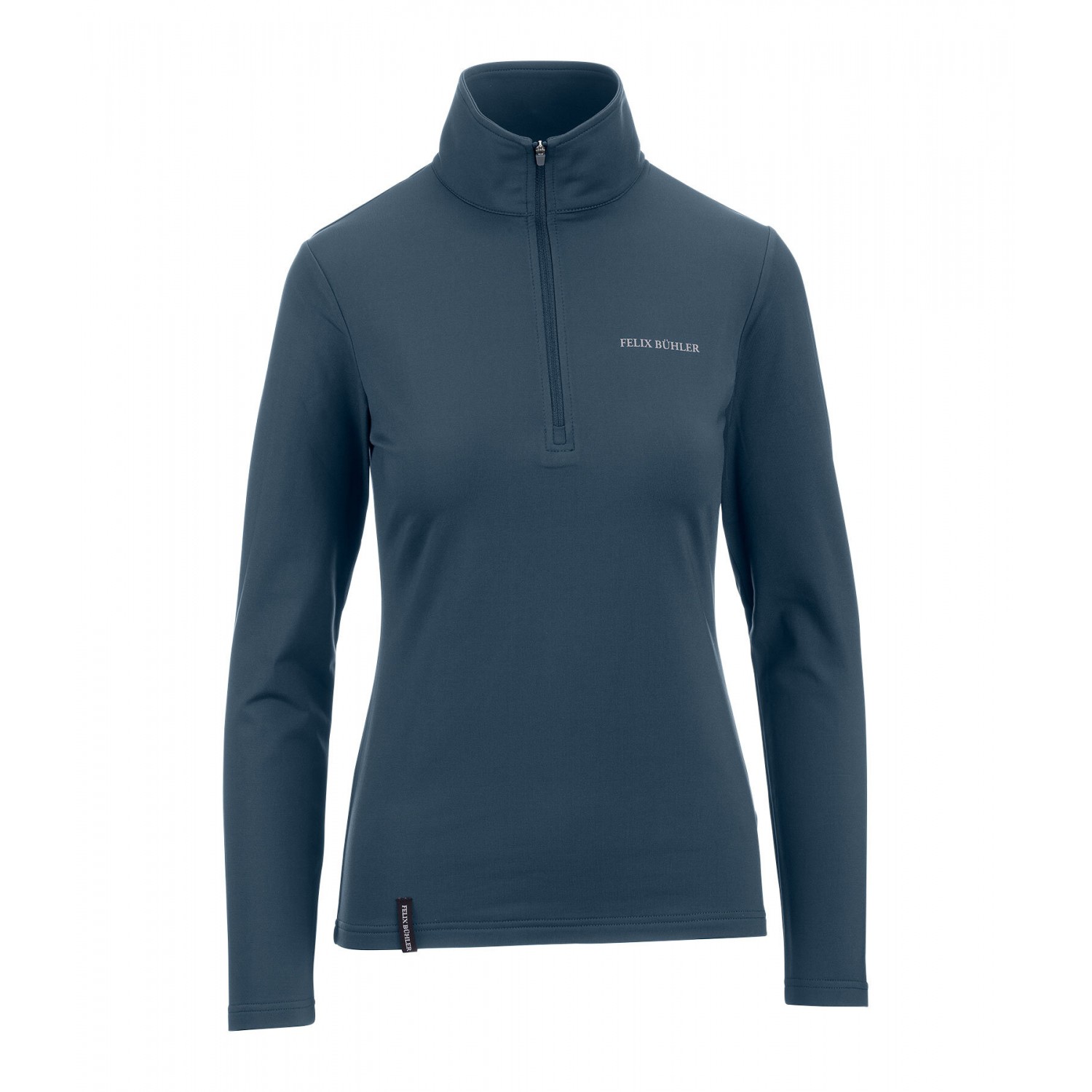 Эластичная и мягкая водолазка с длинными рукавами, воротником-стойкой, молнией и принтом Felix Bühler на груди. Дышащий и быстросохнущий материал, гладкий снаружи и шероховатый внутри. 90% полиэстер, 10% эластан.
