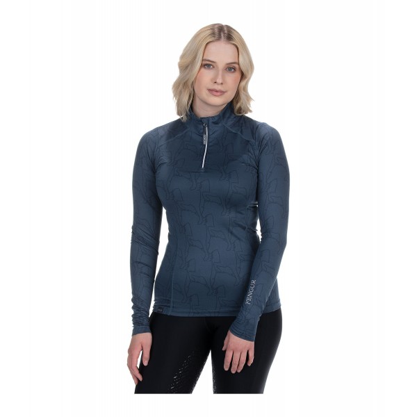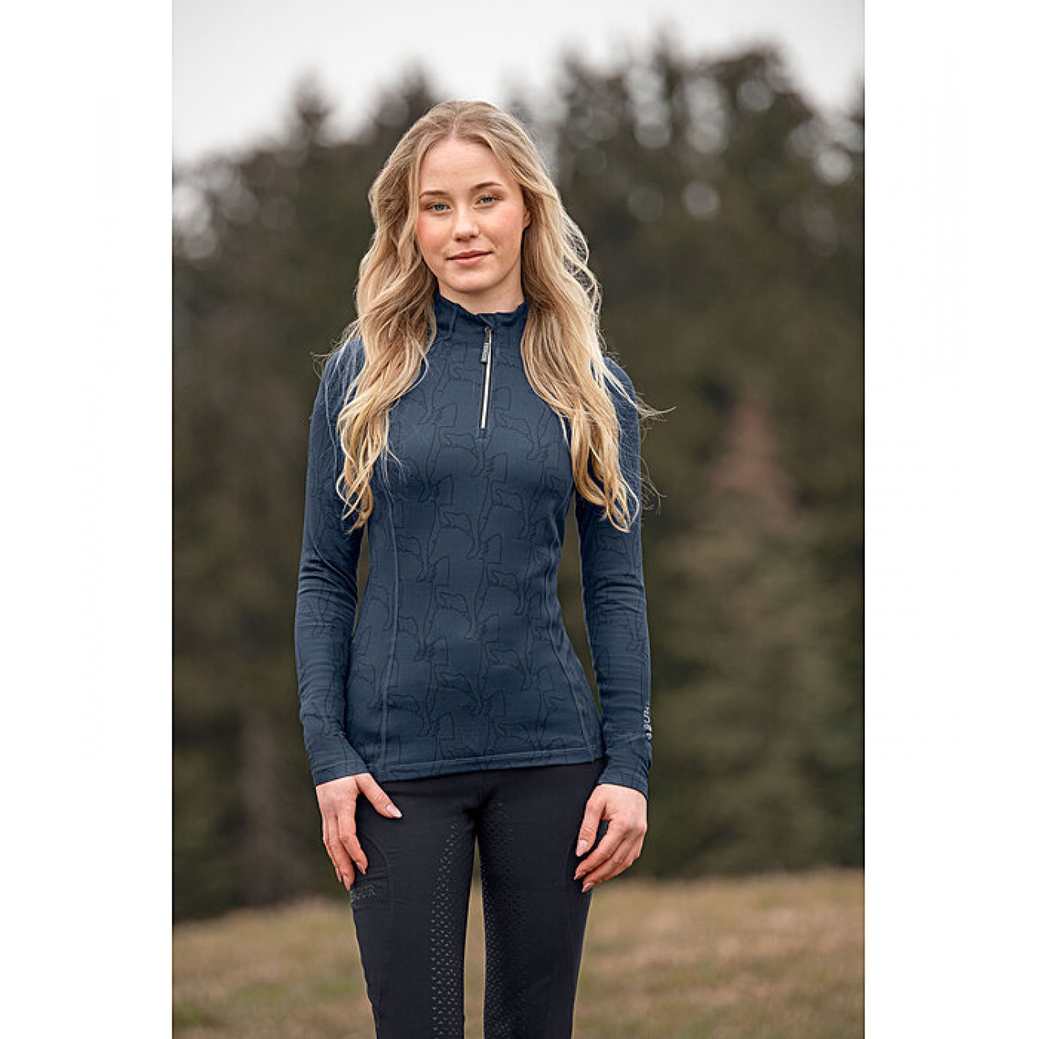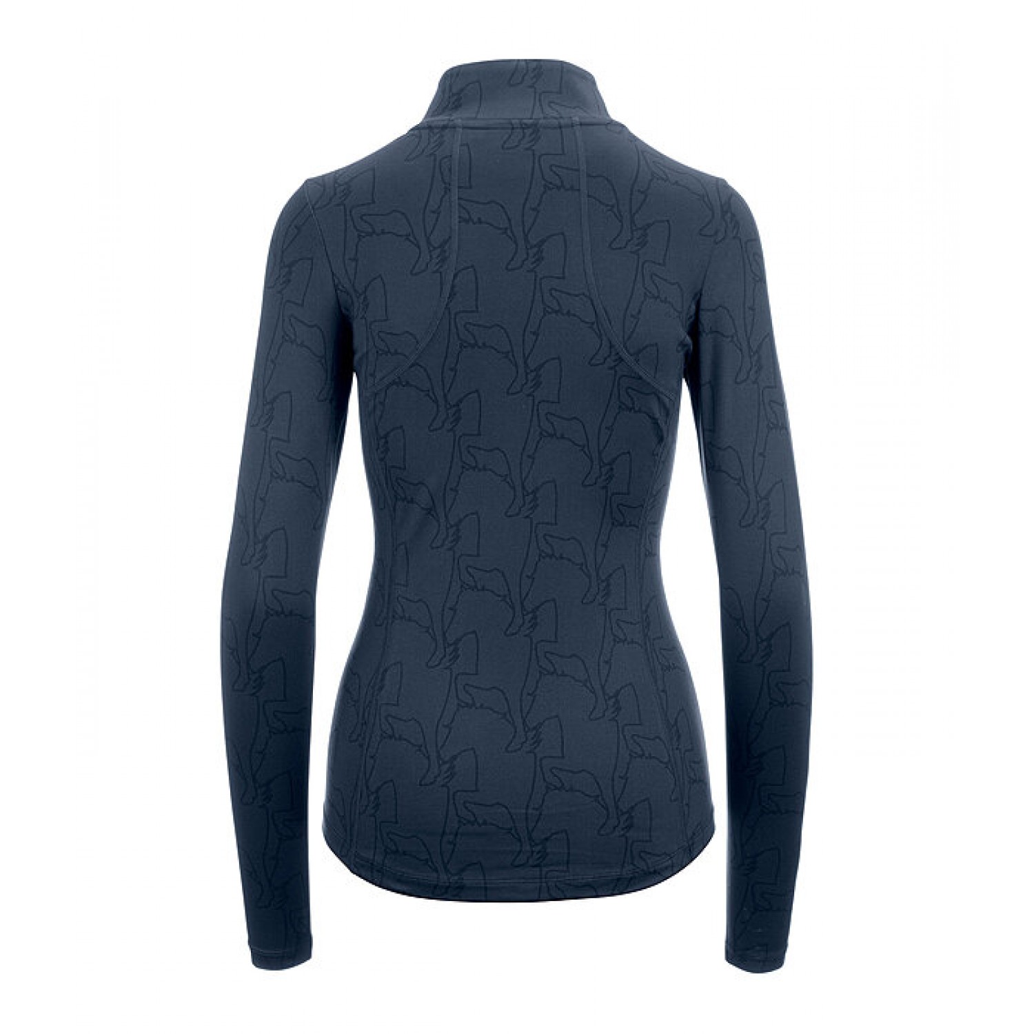 Красивая, мягкая и эластичная функциональная водолазка с длинными рукавами, воротником стойкой и молнией с защитой подбородка. Дышащая и быстросохнущая. С принтом в виде головы лошади по всей поверхности. 88% полиэстер, 12% эластан.
