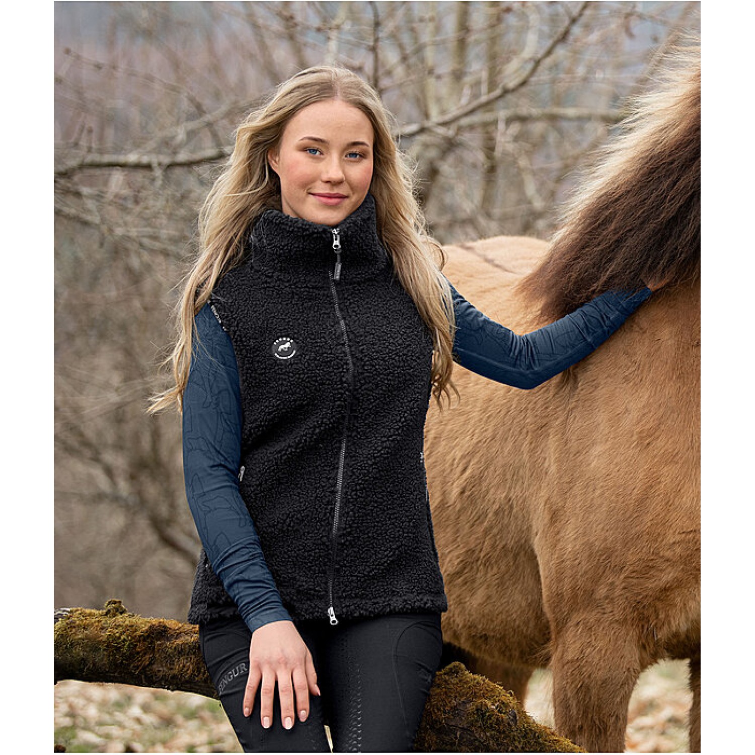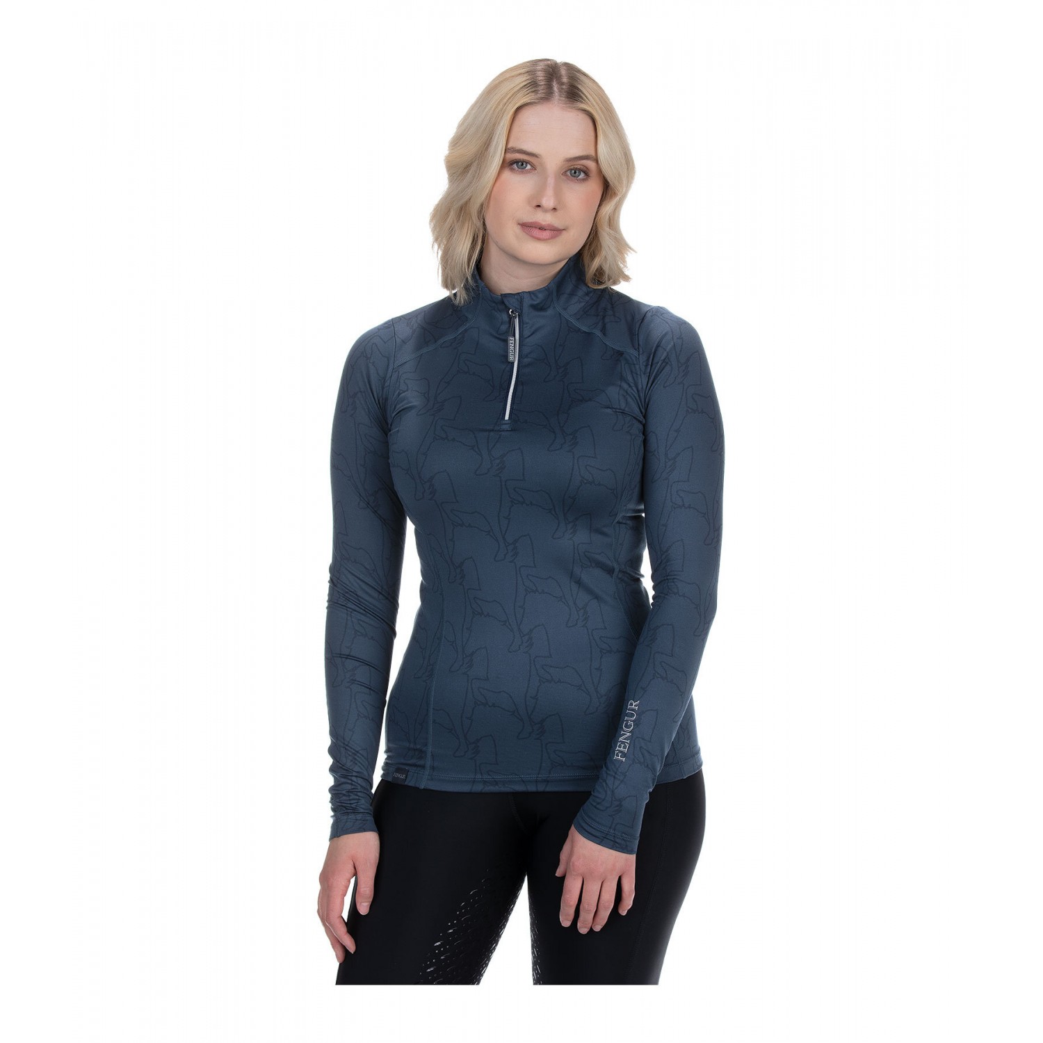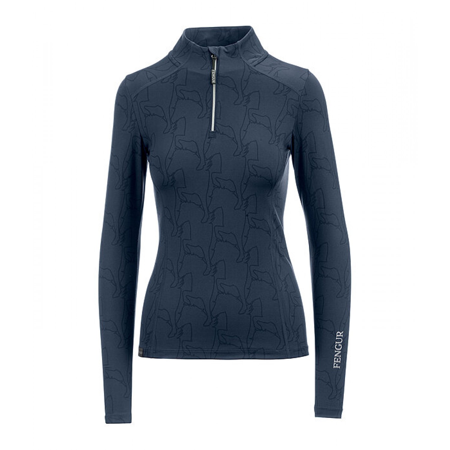 Красивая, мягкая и эластичная функциональная водолазка с длинными рукавами, воротником стойкой и молнией с защитой подбородка. Дышащая и быстросохнущая. С принтом в виде головы лошади по всей поверхности. 88% полиэстер, 12% эластан.