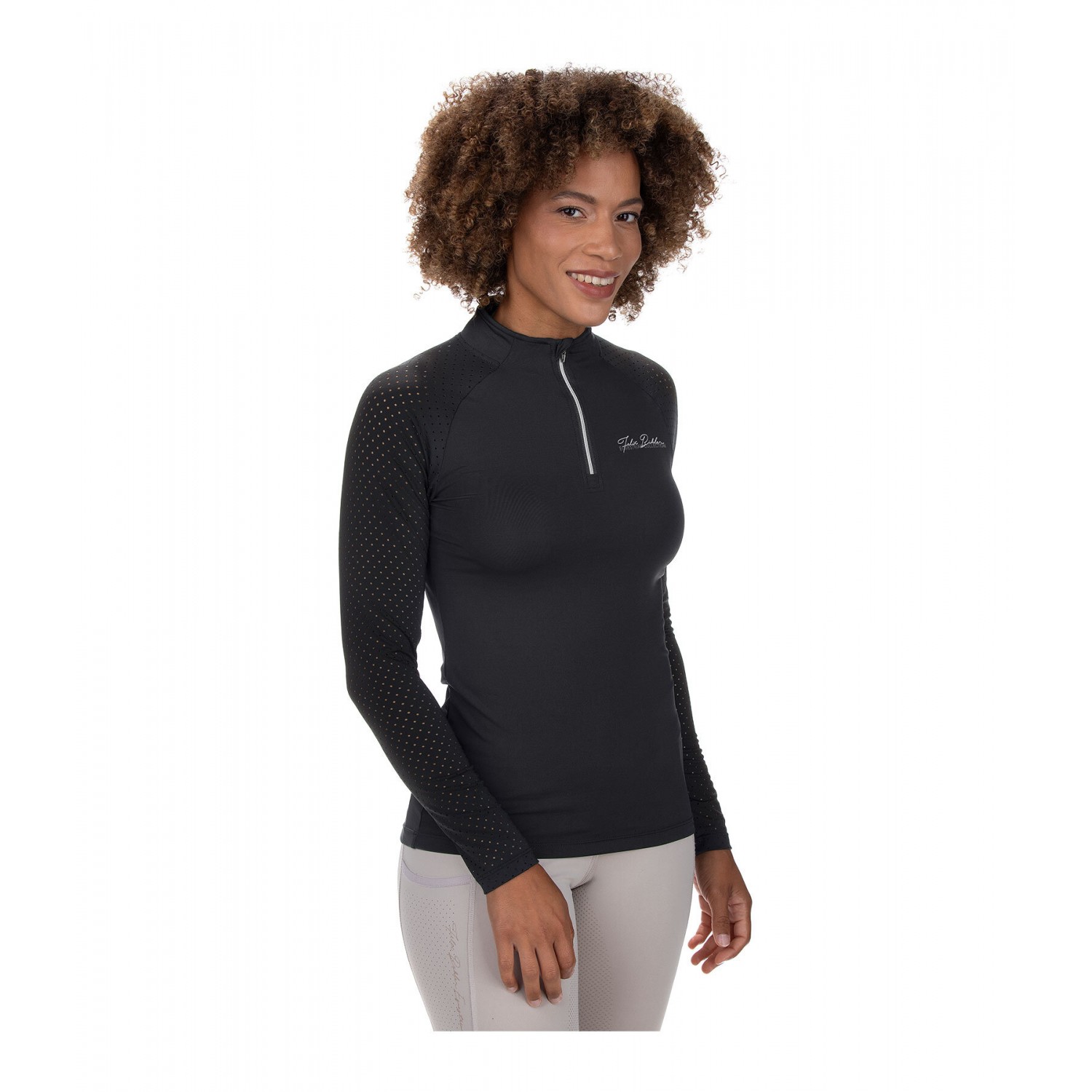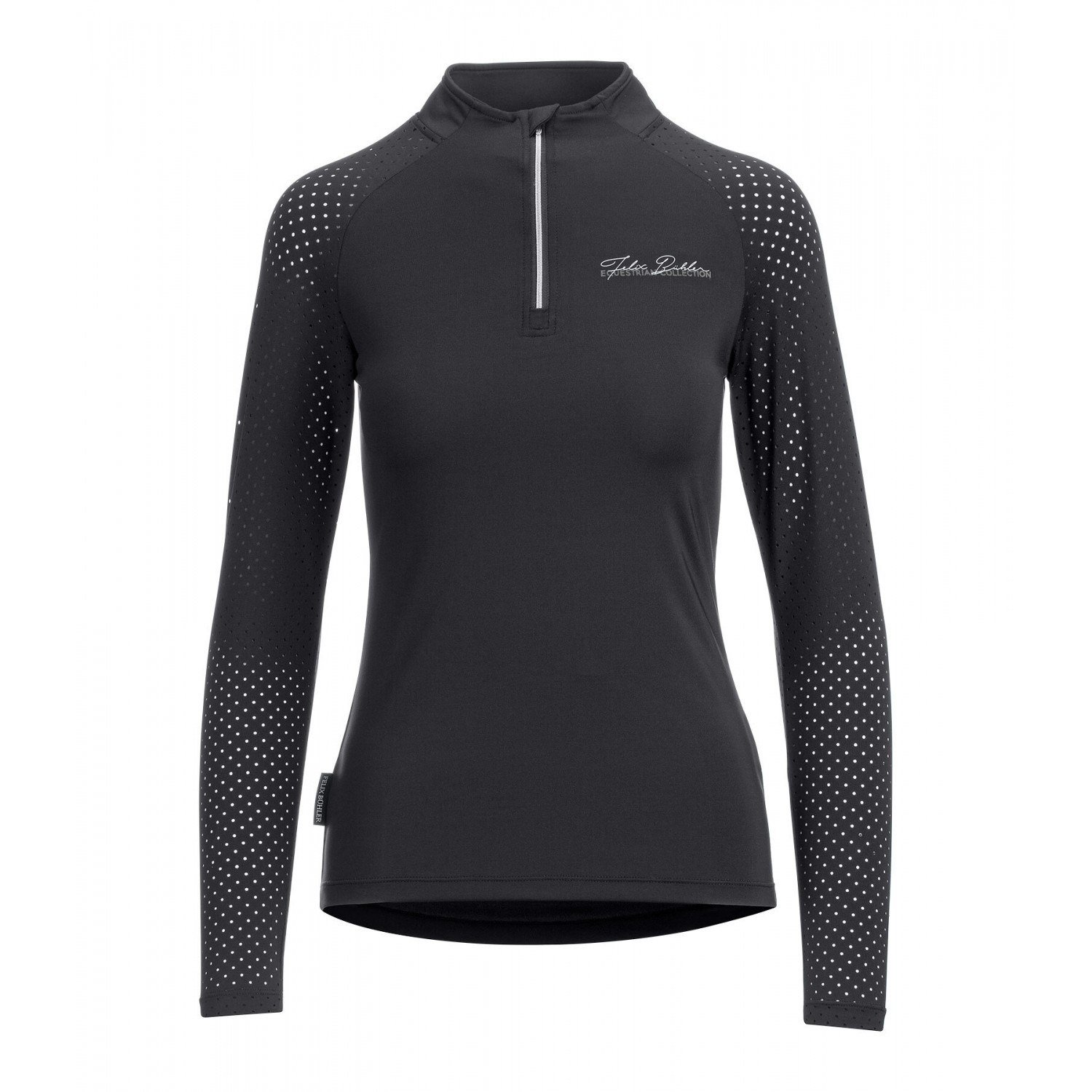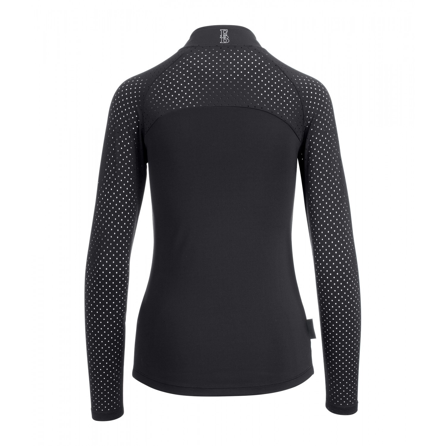 Эта спортивная, дышащая и быстросохнущая футболка с длинными рукавами обеспечивает оптимальную вентиляцию благодаря лазерной перфорации на рукавах реглан и верхней части спины. Она украшена логотипом, имеет воротник-стойку с молнией и защитой подбородка. Состав: 88% полиэстер, 12% эластан.