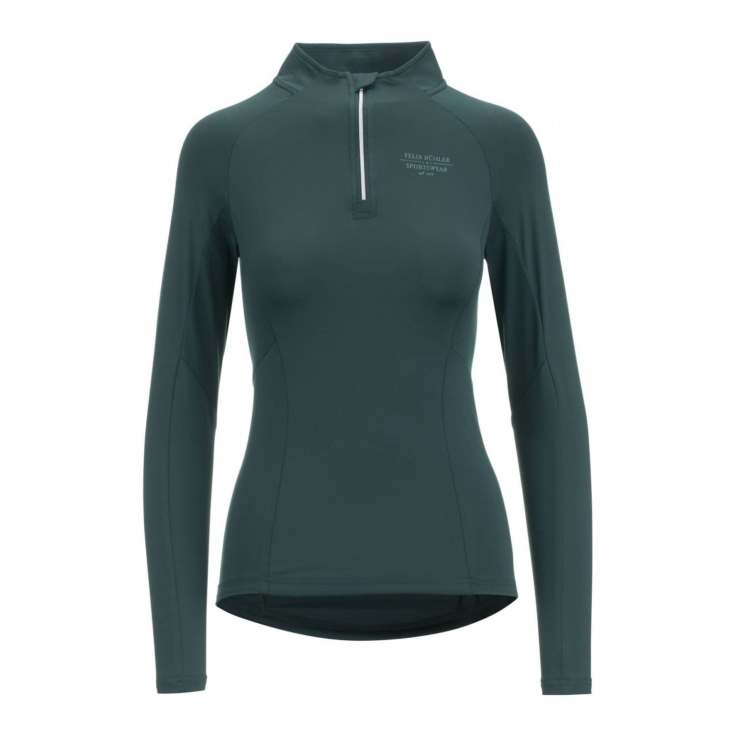 Эластичный и мягкий гольф на молнии с люрексом и воротником-стойкой. Дышащий благодаря боковым сетчатым вставкам. Быстросохнущая. 88% полиэстер, 12% эластан.