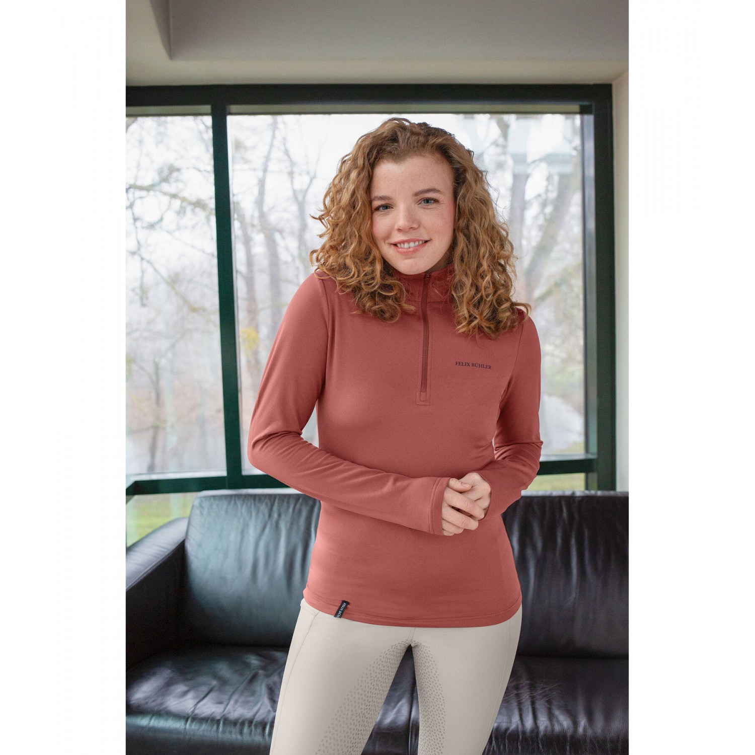 Эластичная и мягкая водолазка с длинными рукавами, воротником-стойкой, молнией и принтом Felix Bühler на груди. Дышащий и быстросохнущий материал, гладкий снаружи и шероховатый внутри. 90% полиэстер, 10% эластан.
