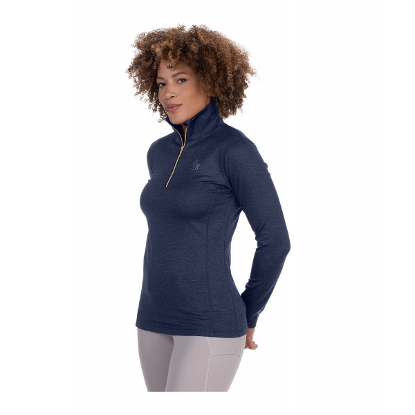 Очень эластичная и мягкая водолазка с длинными рукавами меланжевого цвета, воротником-стойкой и молнией. Дышащий и быстросохнущий материал. Мерцающий принт на груди и рукавах. Высококачественный эластичный материал гладкий снаружи и шероховатый внутри.