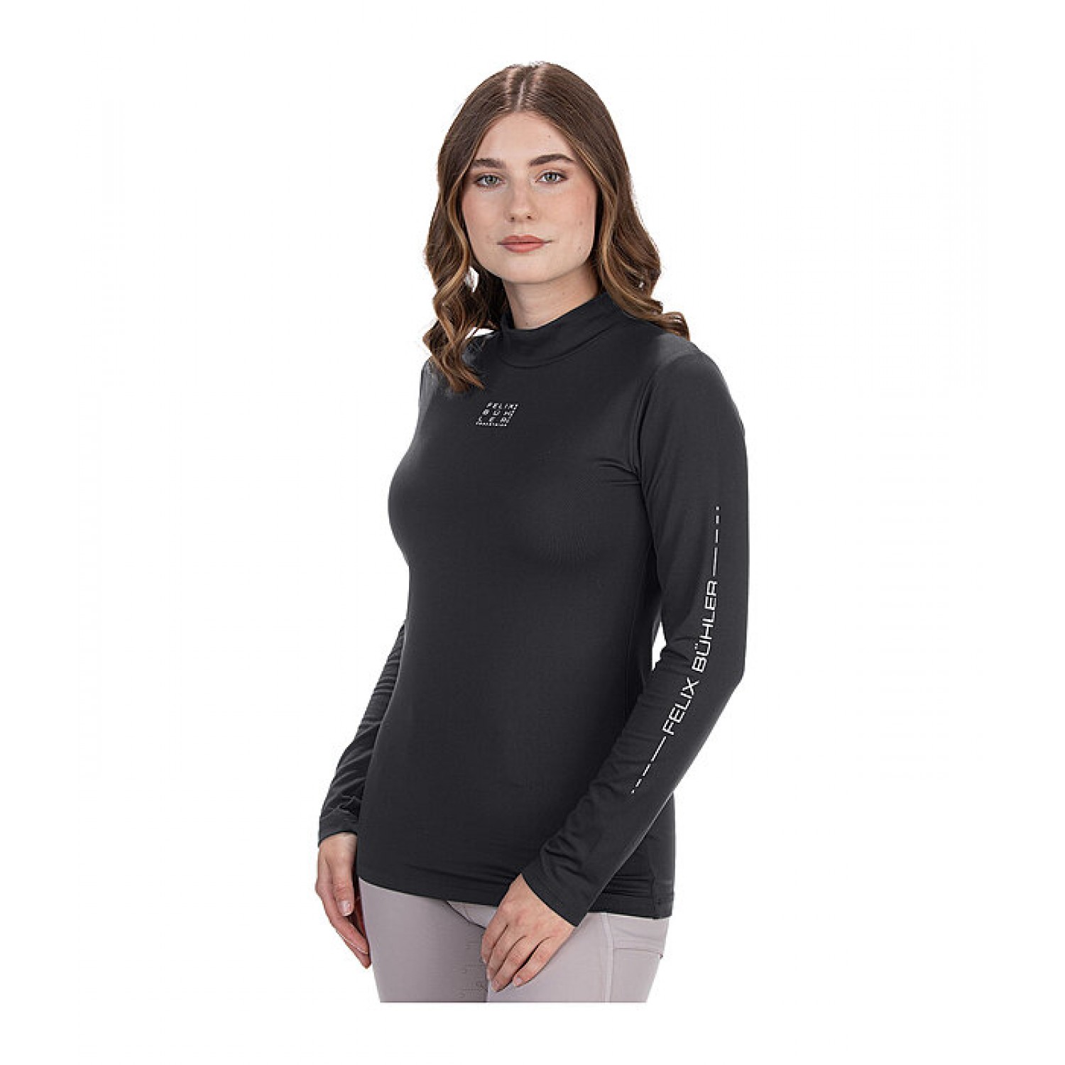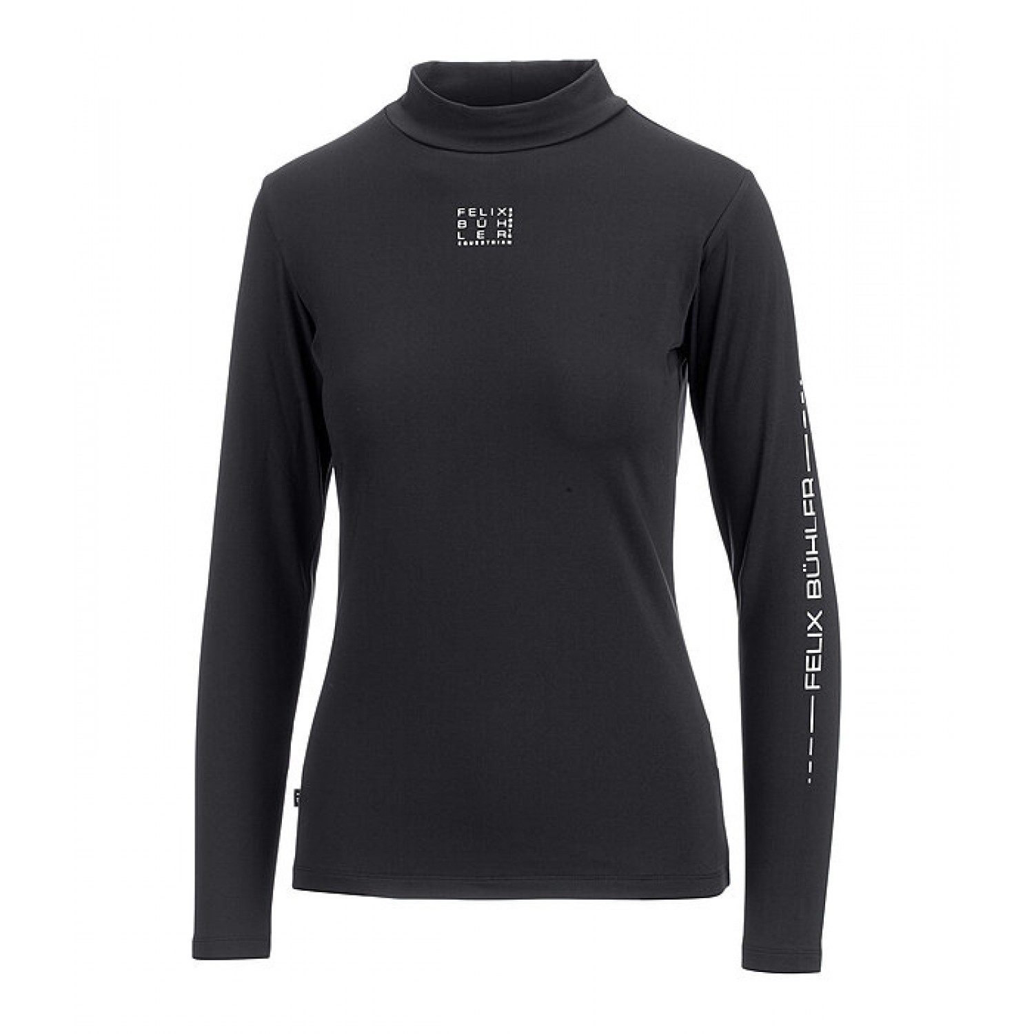 Дышащая, быстросохнущая и эластичная спортивная рубашка с воротником-стойкой и принтом Феликс Бюлер спереди и на рукавах. Мягкая подкладка. 90% полиэстер, 10% эластан.