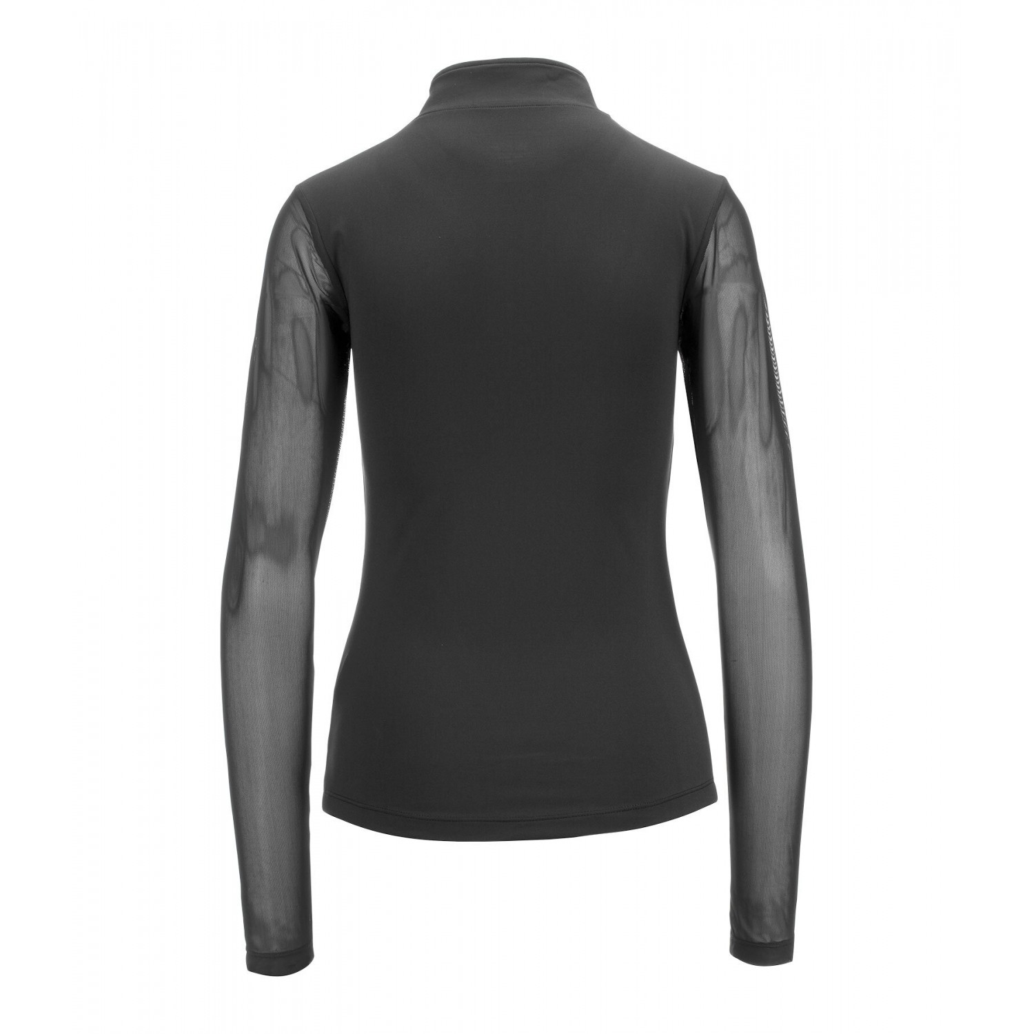 Дышащая и быстросохнущая спортивная футболка с длинными сетчатыми рукавами, воротником-стойкой на молнии и защитой подбородка. Вышивка логотипа на груди. 88% полиэстер, 12% эластан, сетчатая ткань 100% полиэстер.