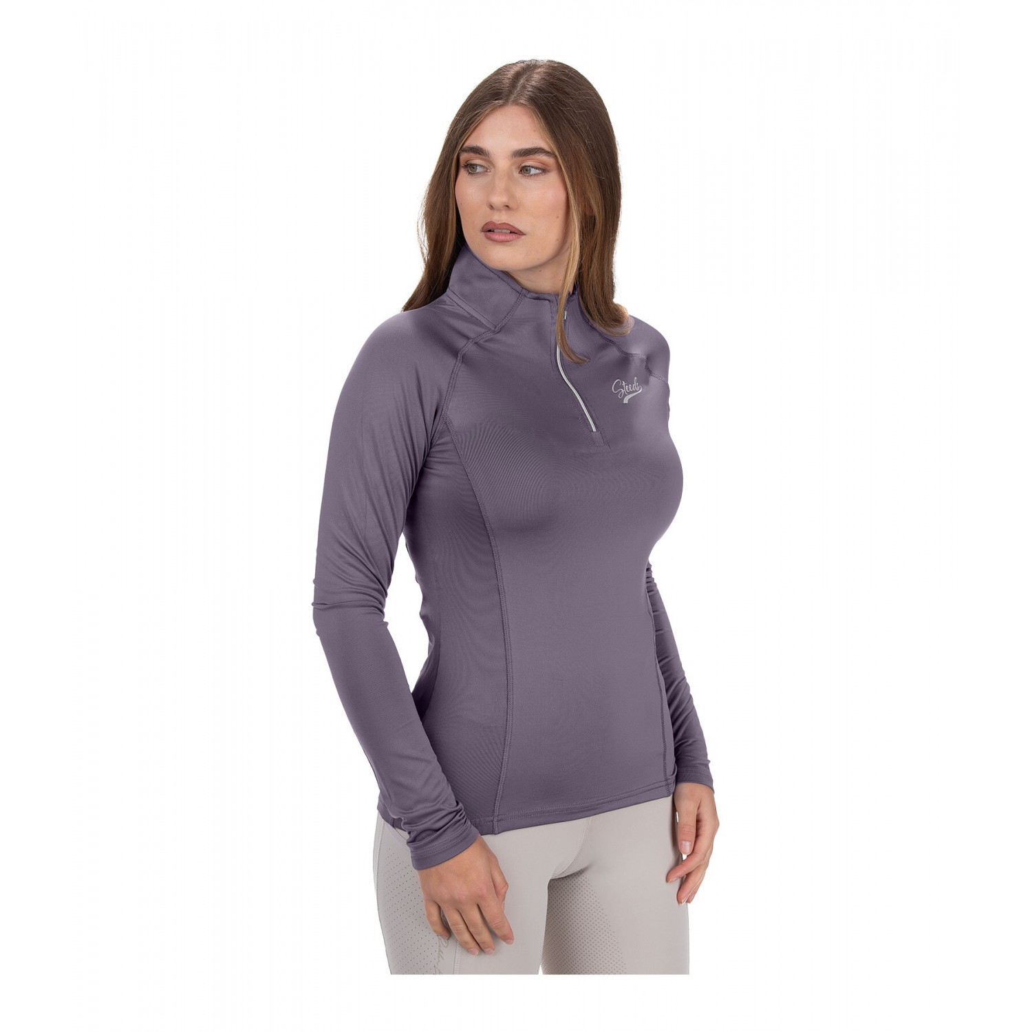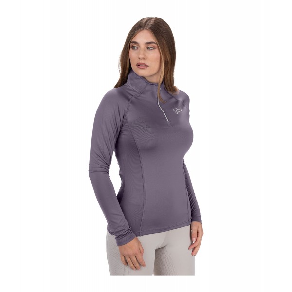 Эластичная и мягкая водолазка с длинными рукавами, застежкой-молнией и воротником-стойкой. Дышащий и быстросохнущий материал. 88% полиэстер, 12% эластан.