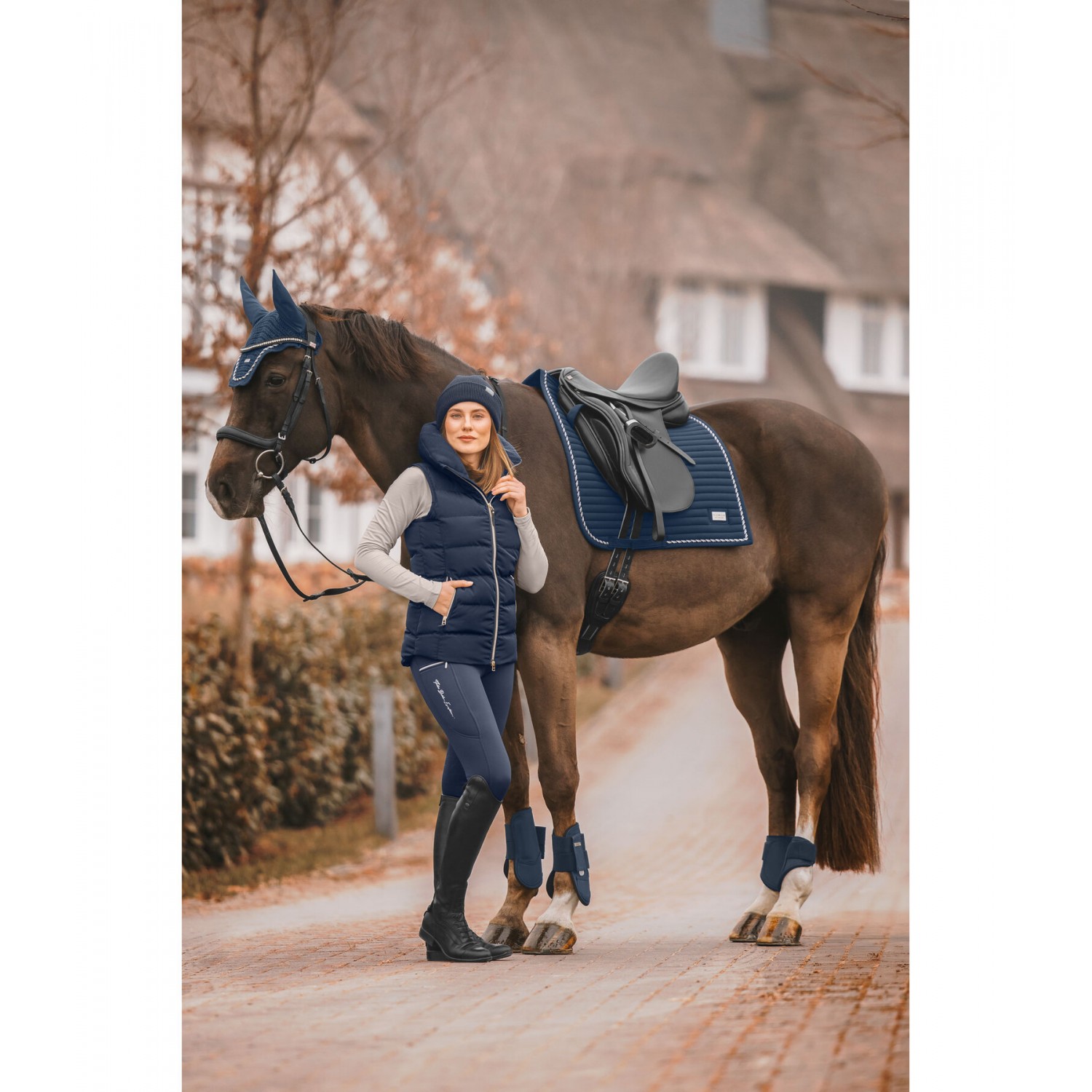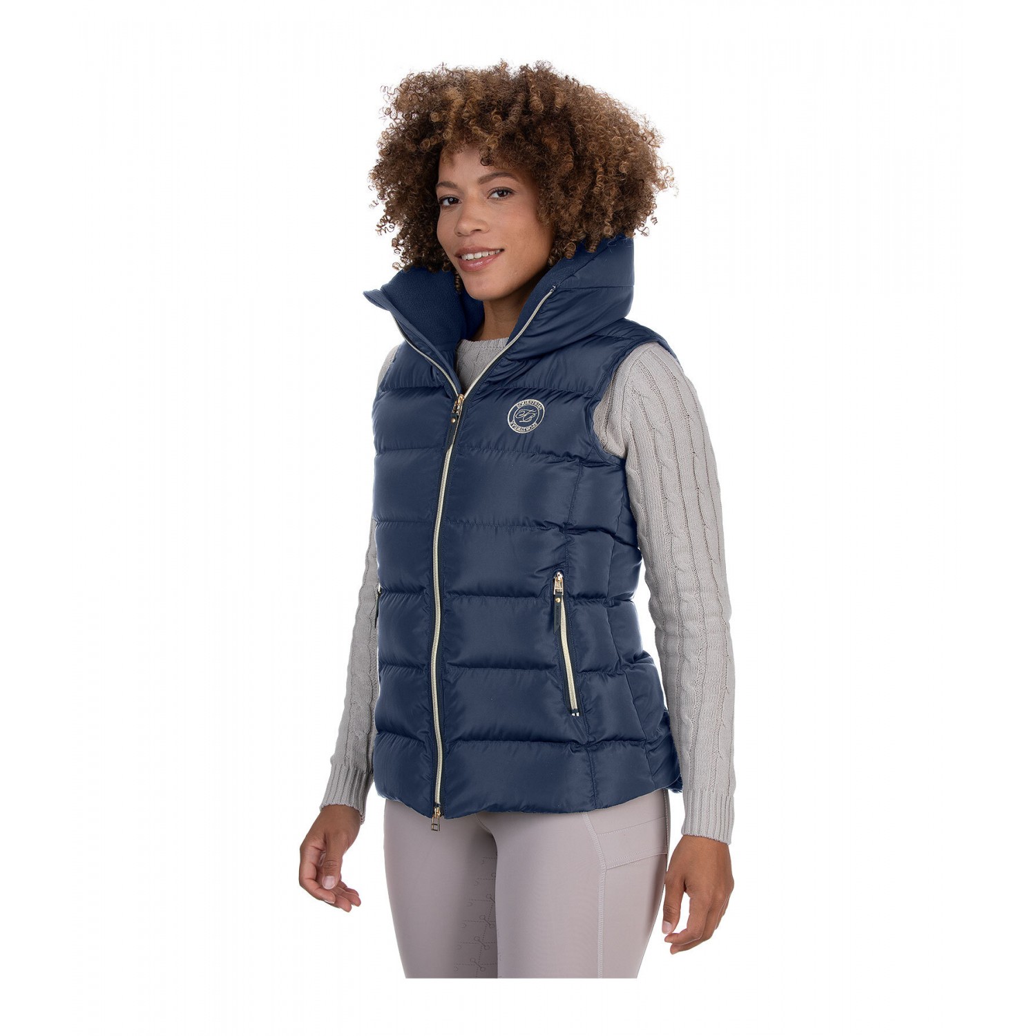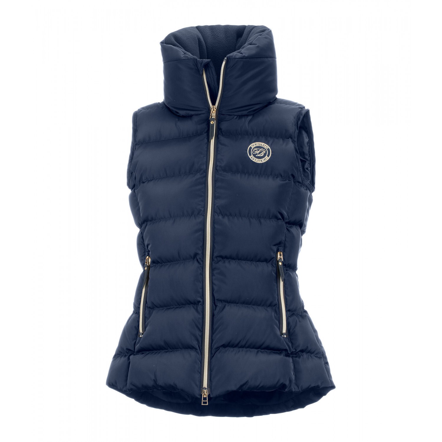 Классический элегантный жилет с очень высоким, объёмным, тёплым воротником с мягкой флисовой подкладкой. Удлинённая спинка. Теплая, мягкая подкладка, двусторонняя молния спереди с подкладкой и защитой подбородка, два передних кармана на молнии и один внутренний карман на молнии. Вышивка Felix Bühler на груди и воротнике. 100% полиэстер.