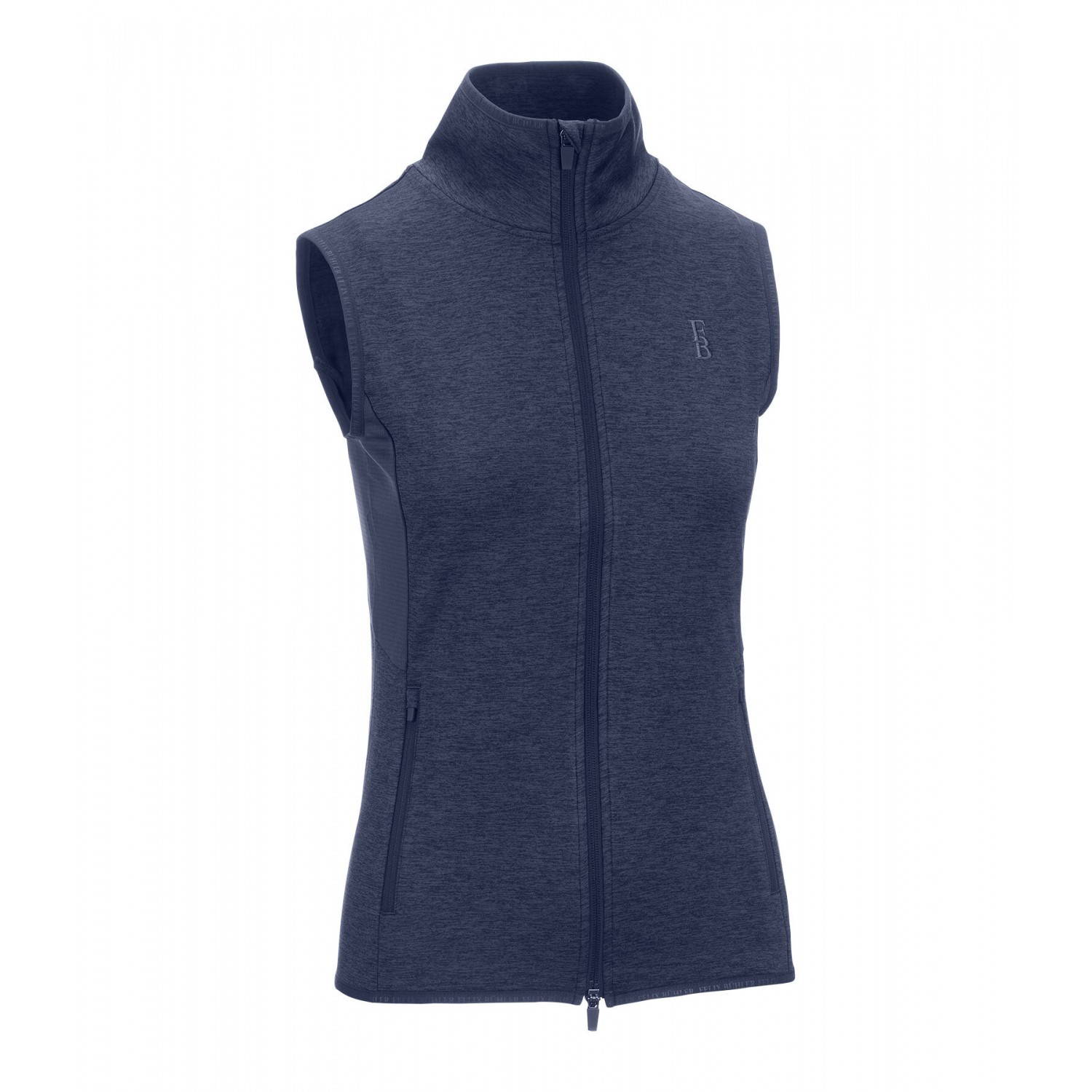 Мягкий, эластичный жилет меланжевого цвета с дышащими сетчатыми вставками по бокам, мягкой внутренней подкладкой и высоким воротником-стойкой. Дышащий и быстросохнущий. Имеет подкладку, двустороннюю молнию спереди с защитой подбородка и два передних кармана на молнии. Ненавязчивая вышивка и принт с логотипом Felix Bühler. 94% полиэстер, 6% эластан.