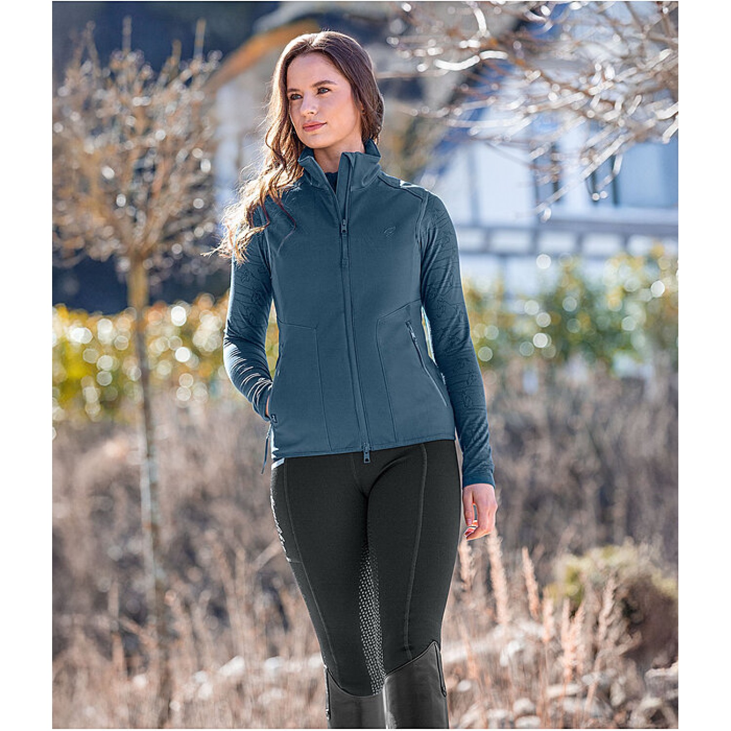 Спортивный, элегантный жилет из софтшелла, облегающего кроя. Водоотталкивающий, ветрозащитный и дышащий. Два передних кармана на молнии и регулируемый подол. Вышитый логотип STEEDS на груди. Состав: 94% полиэстер, 6% эластан.