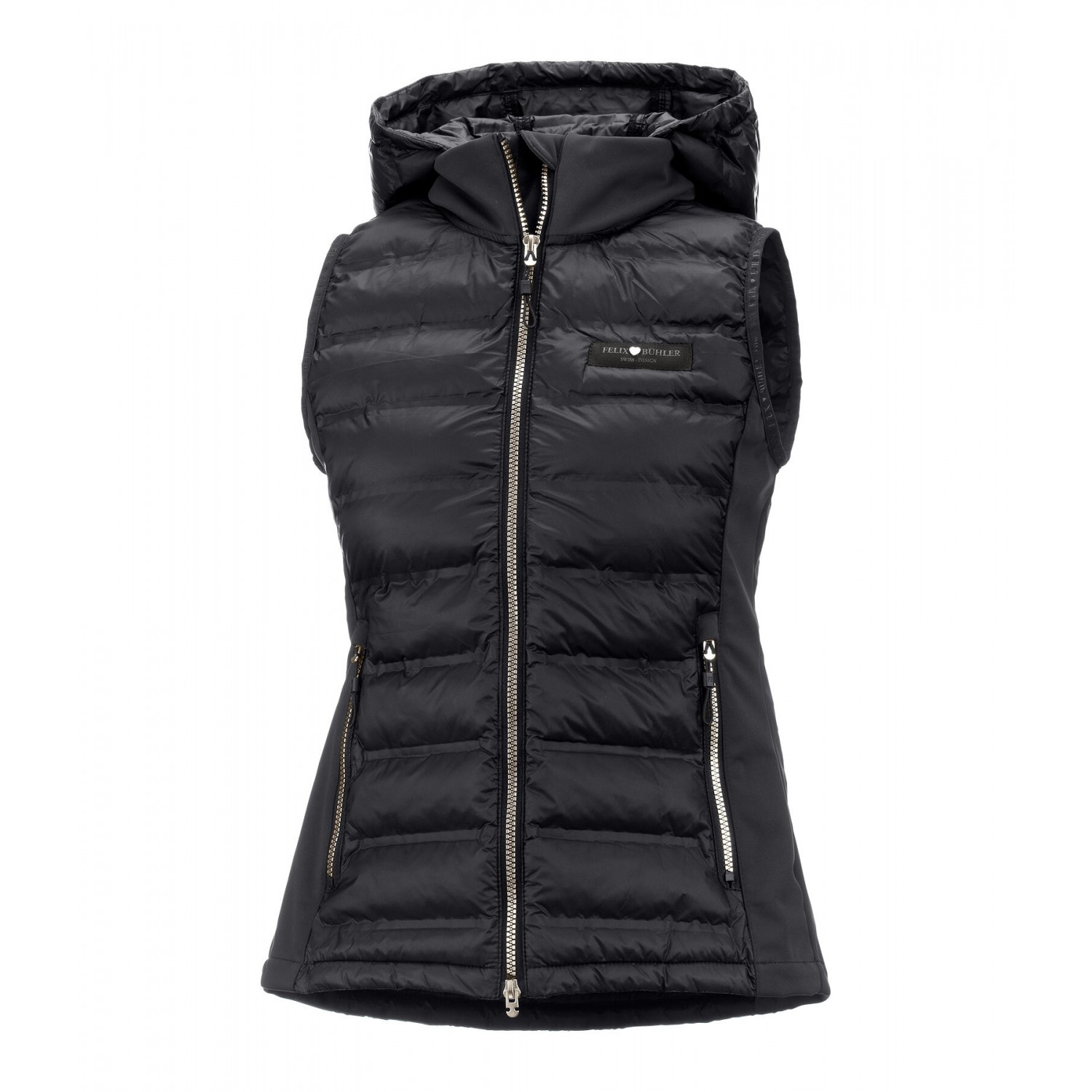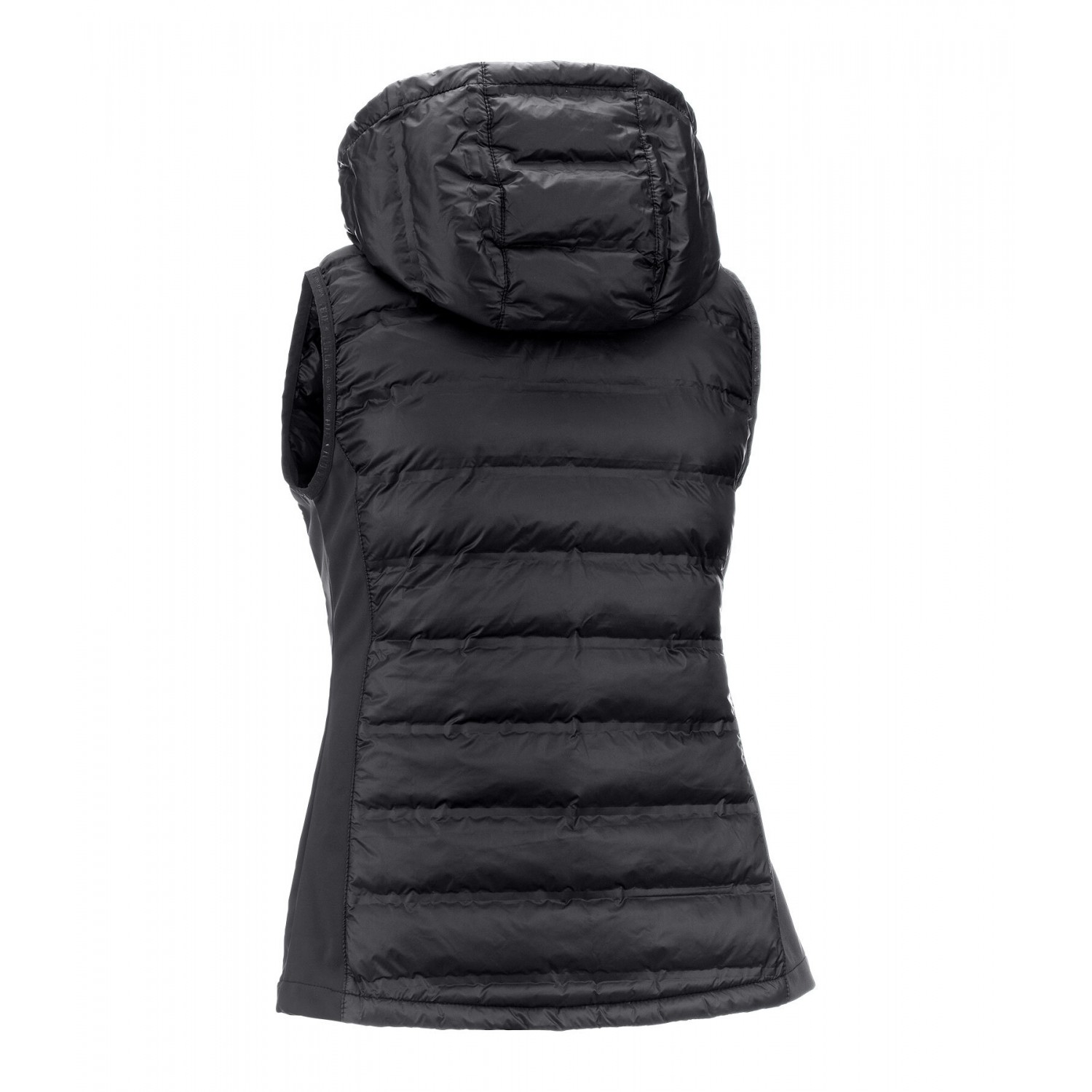 Функциональный комбинированный жилет из мягкого стеганого материала со сварными швами и легким наполнителем, имитирующим пух. Боковые панели из эластичного софтшелла. Воротник-стойка со стеганым капюшоном, который можно снять на молнии или прикрепить к спине с помощью кнопки. Двусторонняя молния с защитой подбородка, два передних кармана на молнии и логотип на груди. 100% нейлон, софтшелл и наполнитель, имитирующий пух, 100% полиэстер.