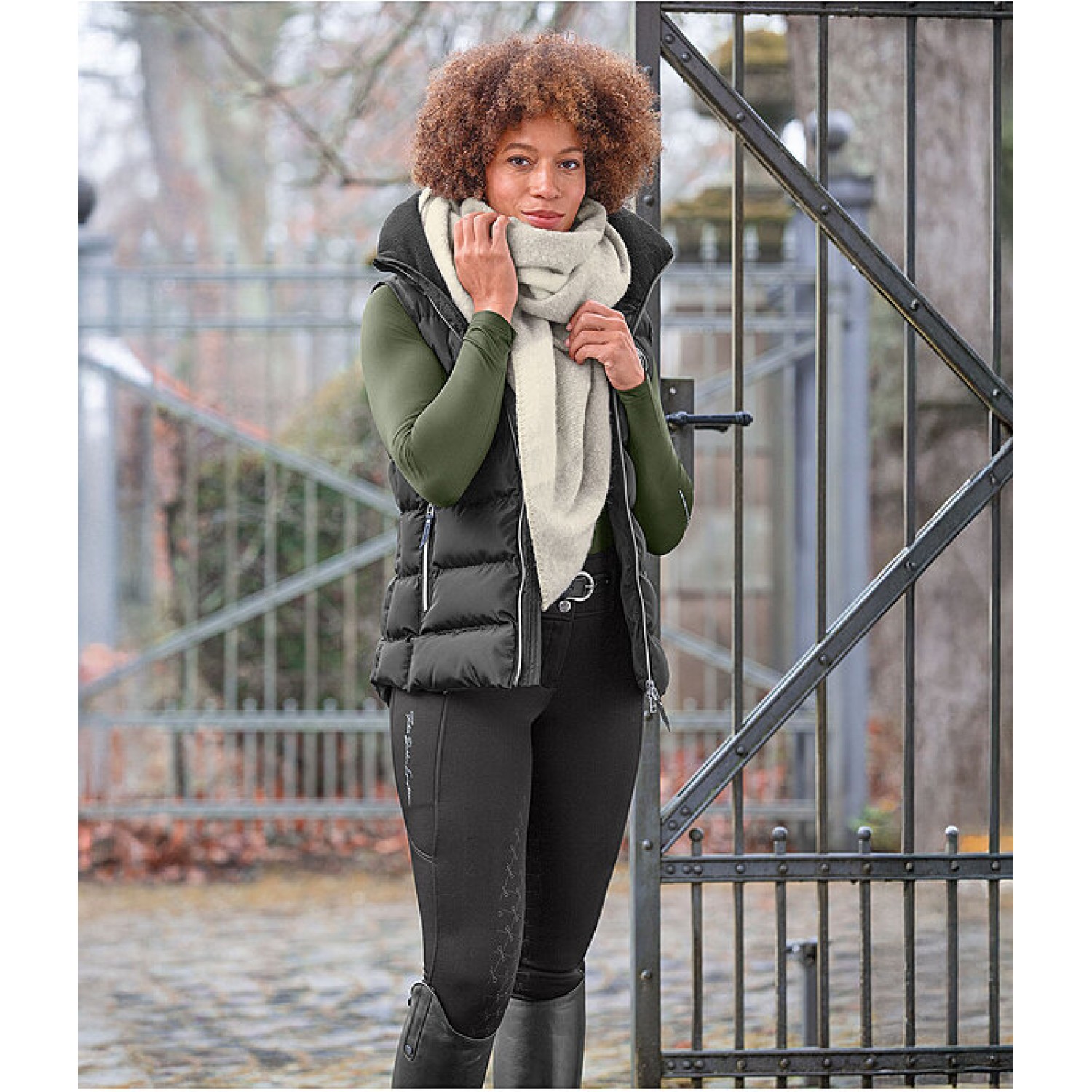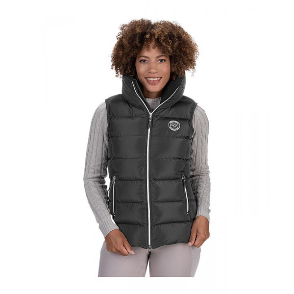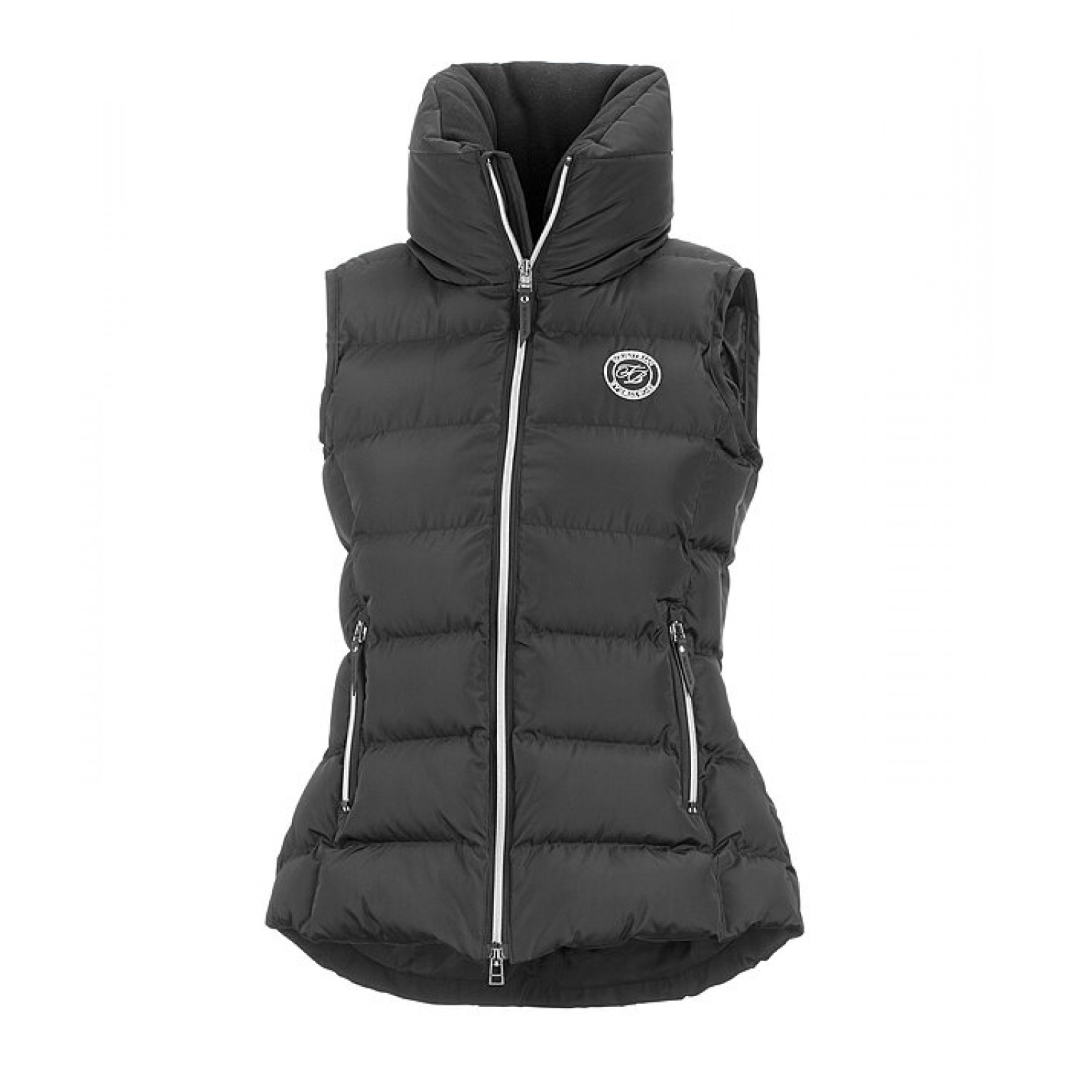 Классический элегантный жилет с очень высоким, объёмным, тёплым воротником с мягкой флисовой подкладкой. Удлинённая спинка. Теплая, мягкая подкладка, двусторонняя молния спереди с подкладкой и защитой подбородка, два передних кармана на молнии и один внутренний карман на молнии. Вышивка Felix Bühler на груди и воротнике. 100% полиэстер.