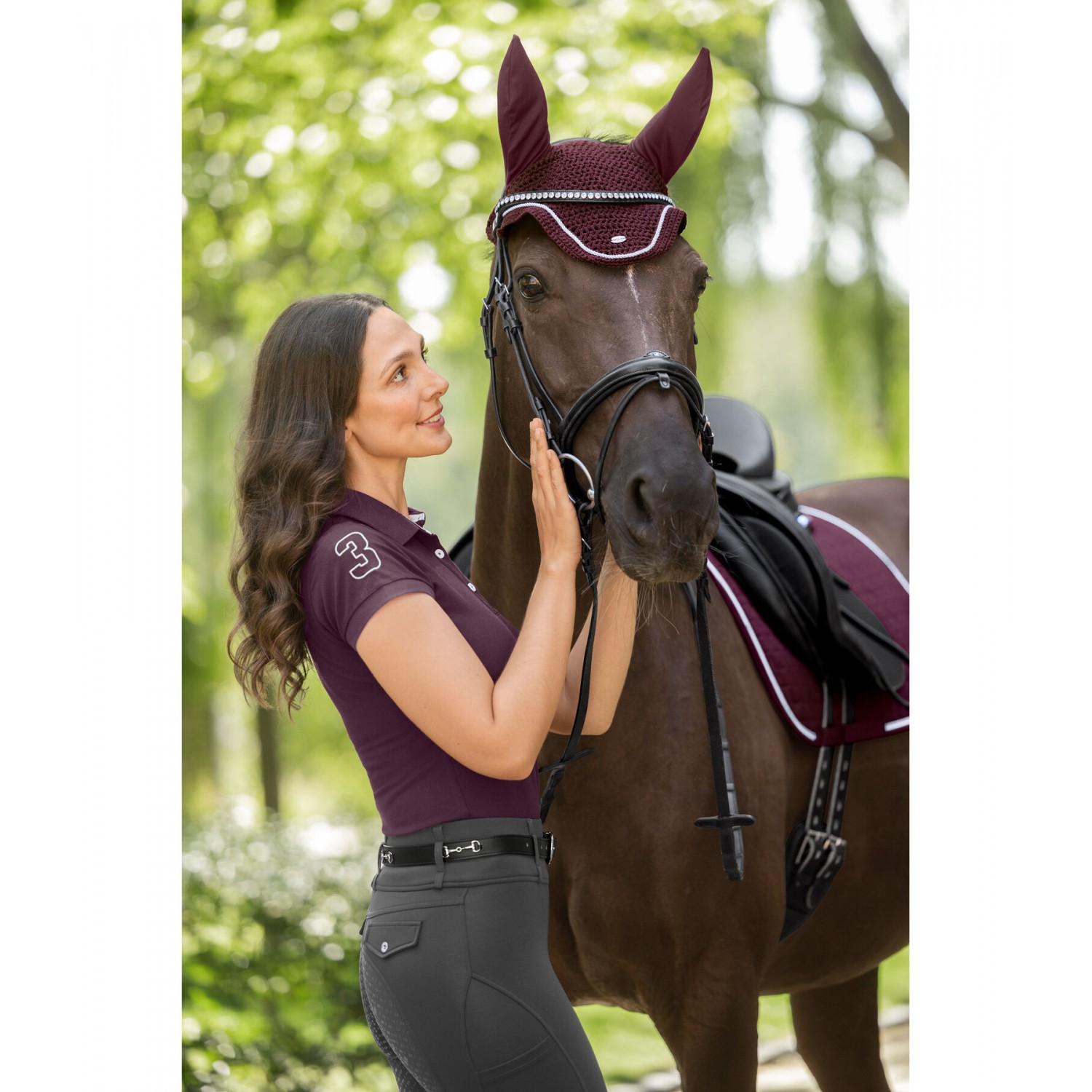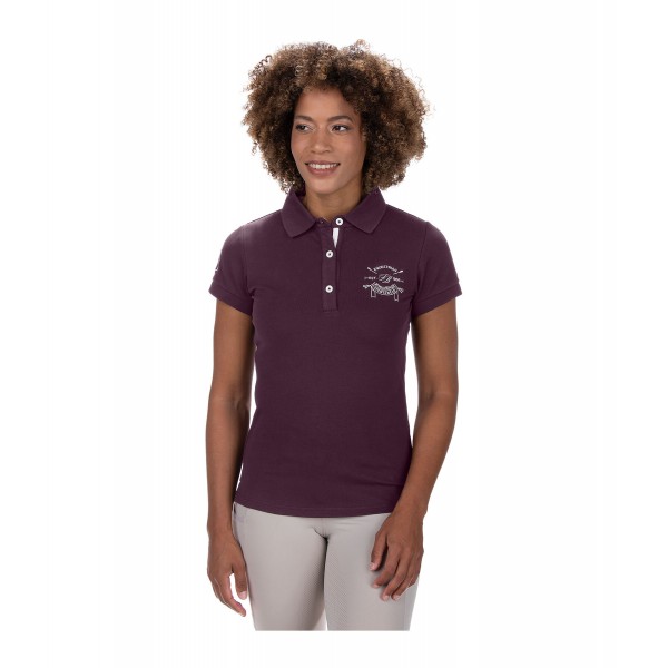 Классика для верховой езды. Спортивная женская рубашка-поло из высококачественного эластичного хлопкового пике. Изящная вышивка на груди и рукавах. Воротник внутри, планка на пуговицах и боковые разрезы с контрастными лентами. Воротник и манжеты выполнены из эластичного трикотажного материала. 95% хлопок, 5% спандекс.