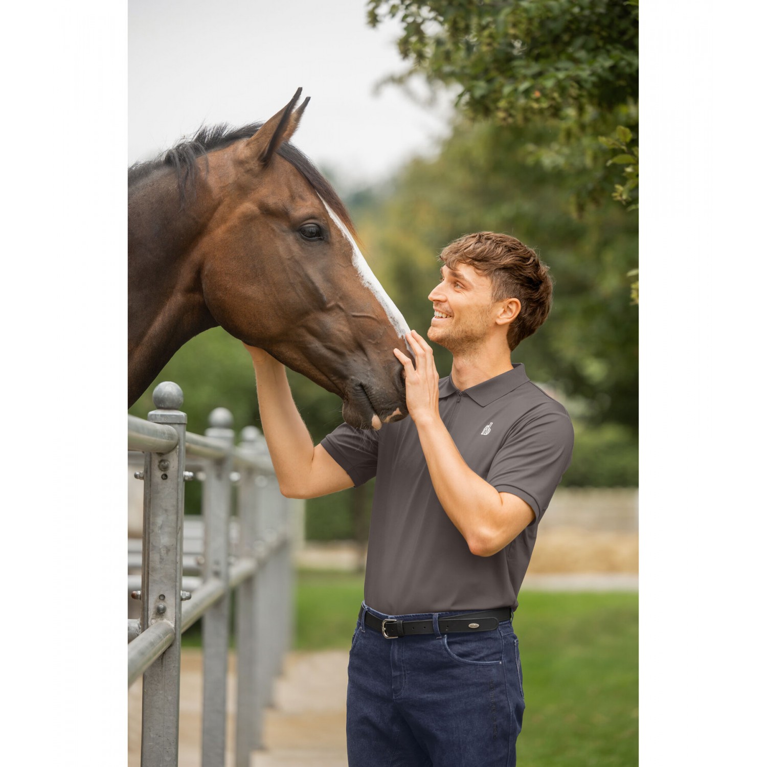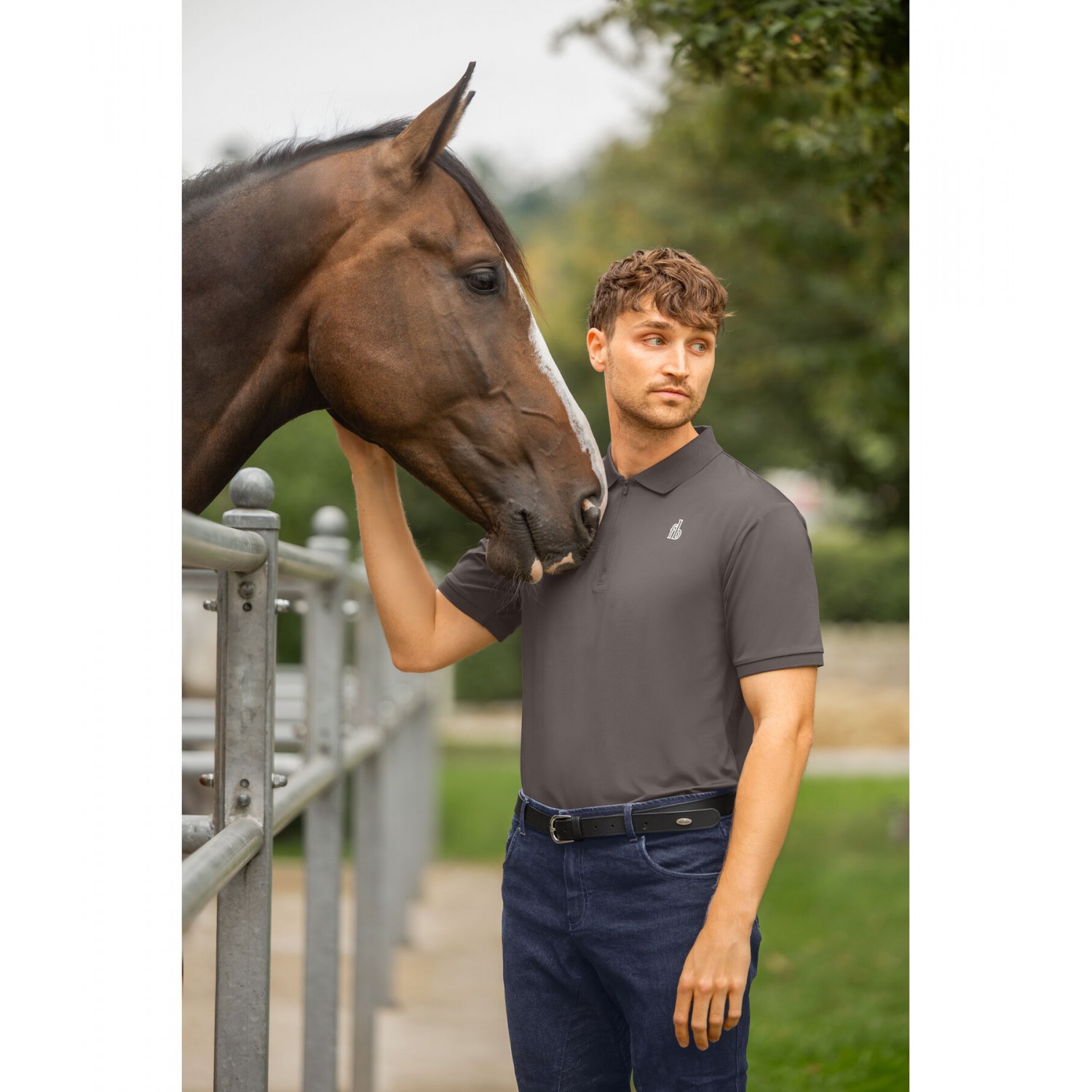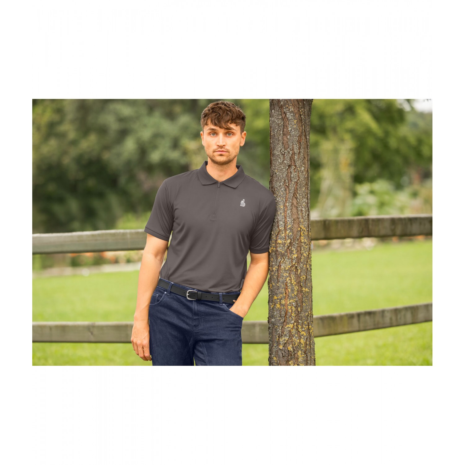 Спортивная эластичная рубашка-поло с застежкой-молнией. Изготовлена из дышащего и быстросохнущего функционального материала. 100% полиэстер.