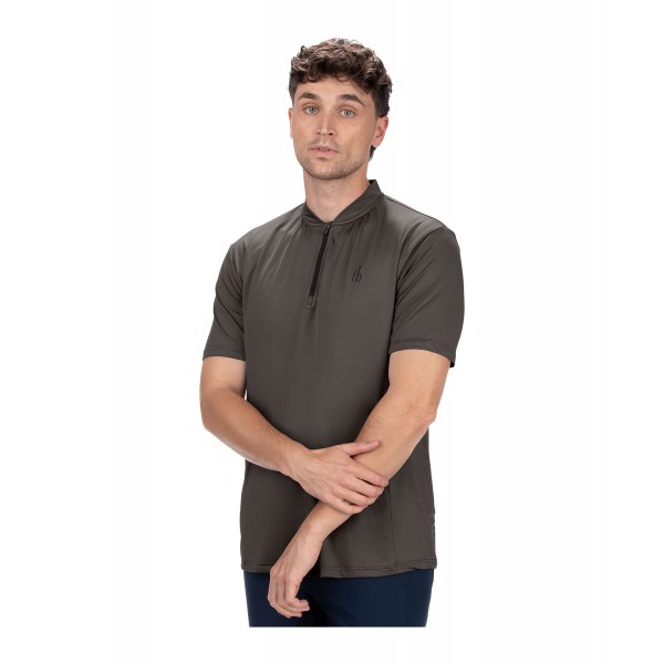 Спортивная эластичная футболка с короткими рукавами и застежкой-молнией. Идеальная воздухопроницаемость благодаря боковым сетчатым вставкам. 88% полиэстер, 12% эластан.