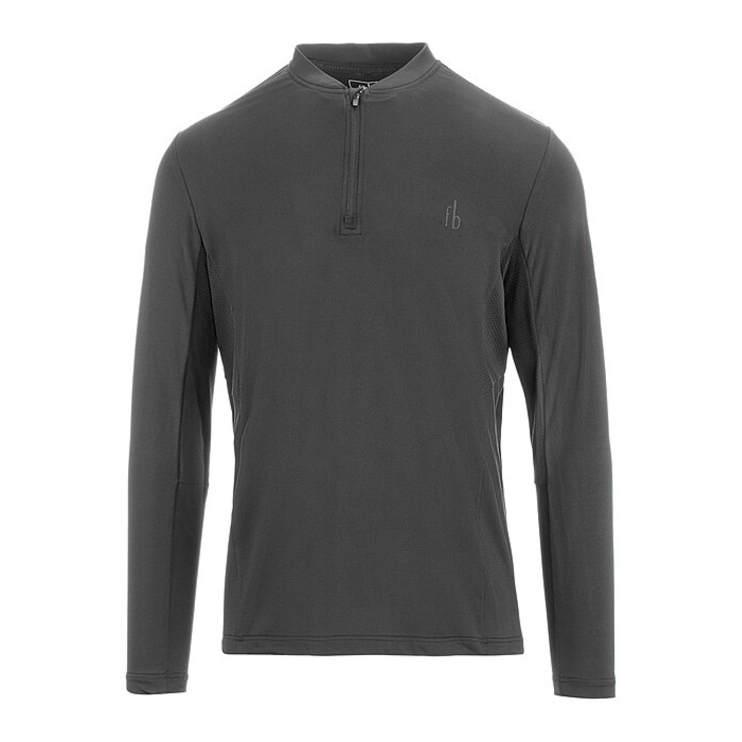 Эластичный гольф с длинными рукавами и застежкой-молнией. Отличная воздухопроницаемость благодаря сетчатым боковым вставкам. Тонкая ткань подходит для тёплых дней. Быстросохнущий. Состав: 88% полиэстер, 12% эластан.