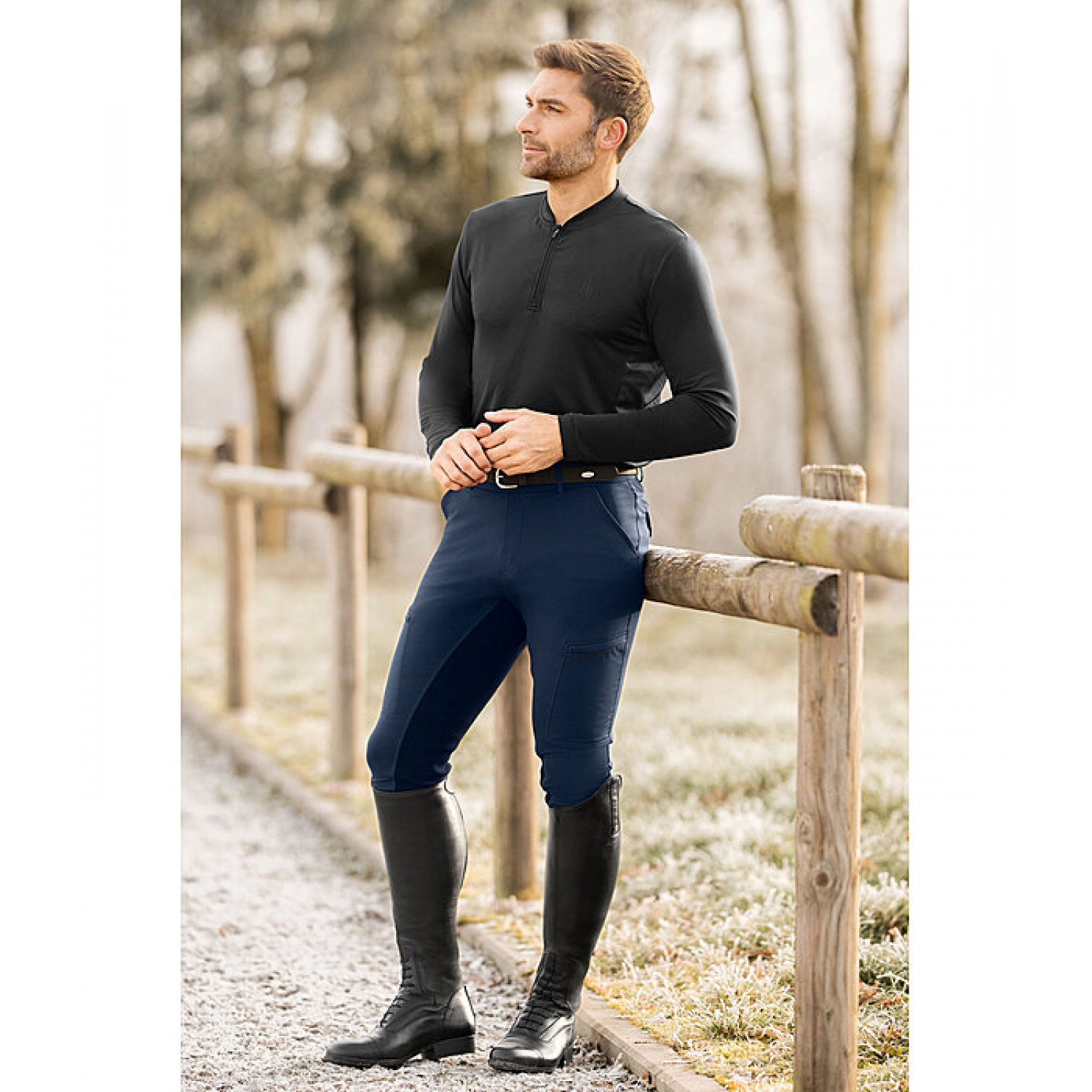 Стильные и очень удобные мужские бриджи с полной леей из высококачественной мягкой искусственной кожи. Суперэластичный материал, тянущийся в четырёх направлениях, обеспечивает максимальный комфорт. Спортивные боковые карманы для мобильного телефона на потайных молниях, два задних кармана на пуговицах. Дышащий и быстросохнущий материал. Состав: 75% полиэстер, 25% эластан.