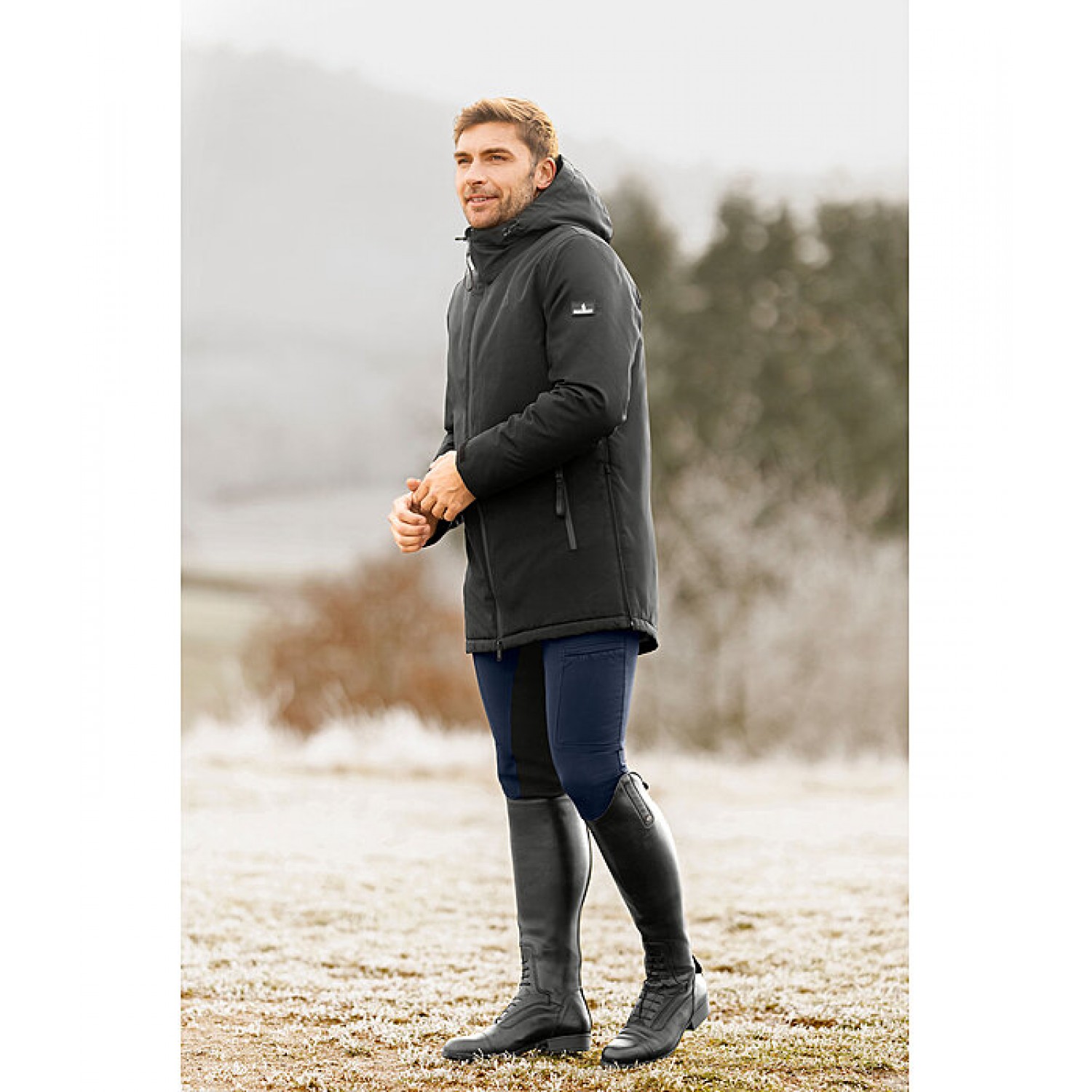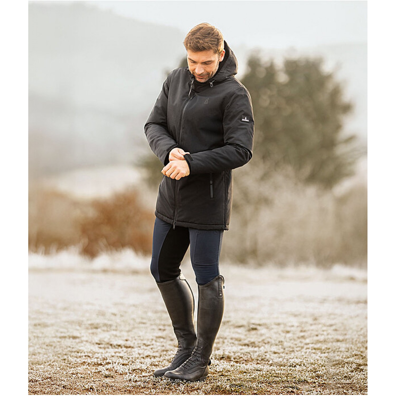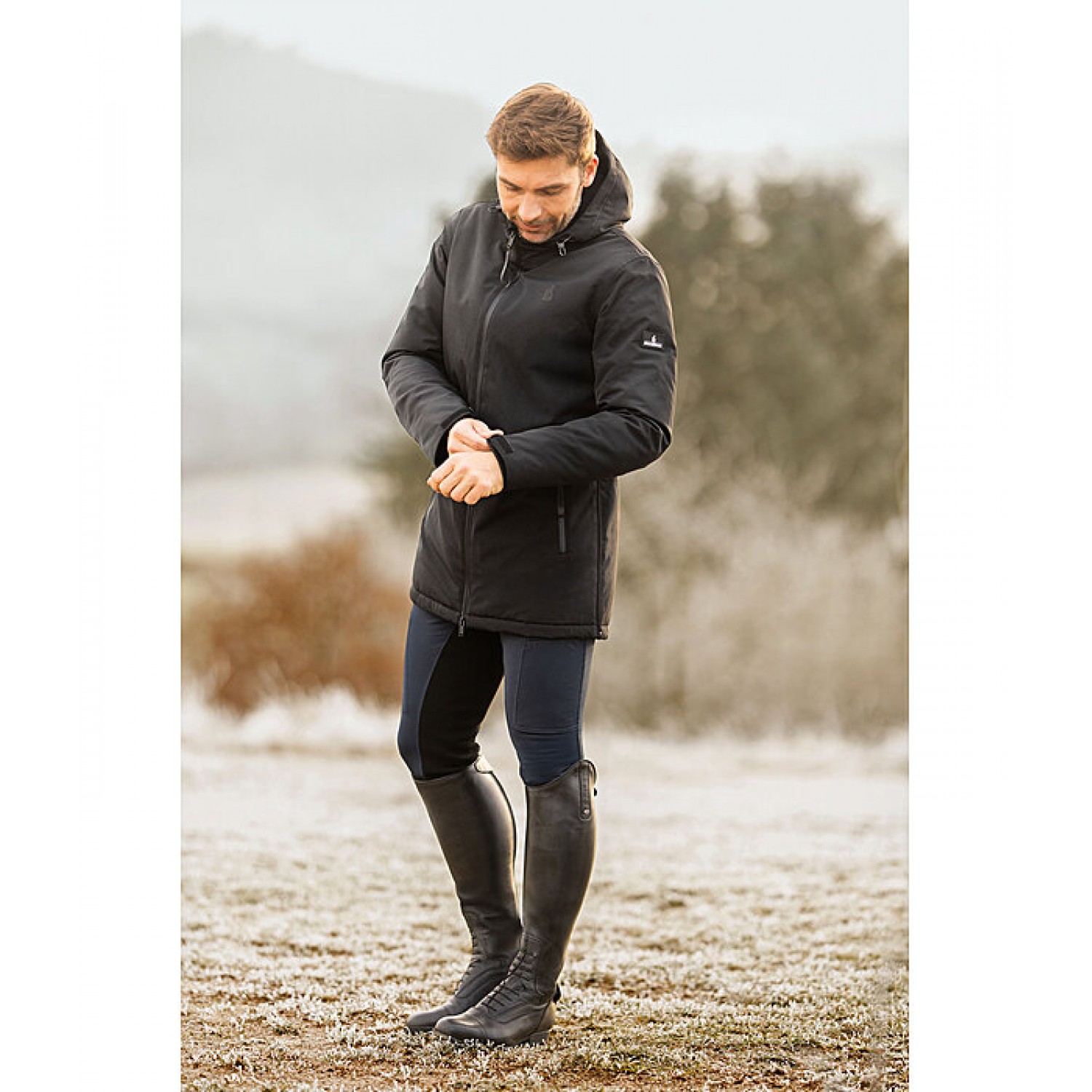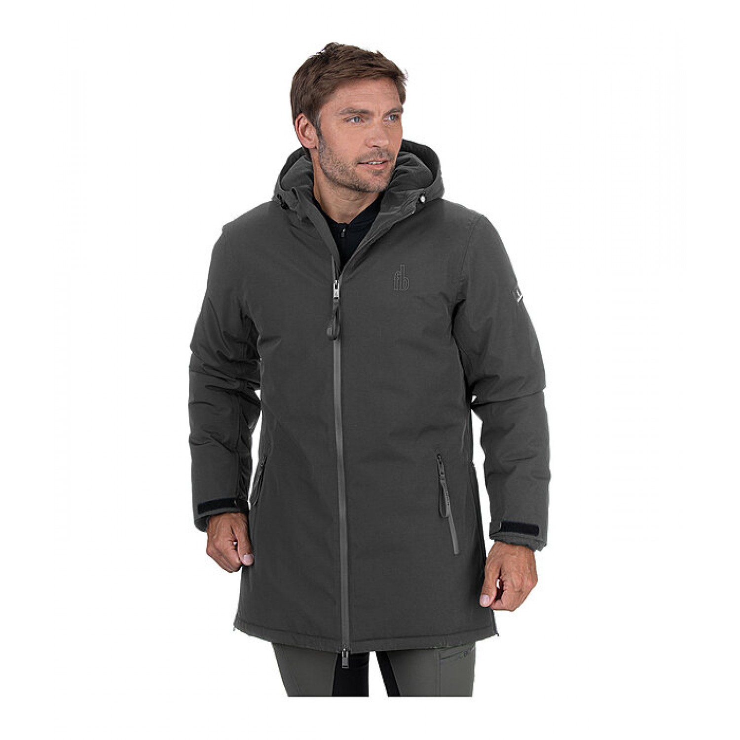 Функциональная мужская парка с тёплой стёганой подкладкой. Водонепроницаемая, ветронепроницаемая и дышащая. Водонепроницаемая двухсторонняя молния спереди с защитой подбородка и два передних кармана на молнии. Ширина рукавов регулируется застёжкой на липучке. Высокий воротник с регулируемым капюшоном на флисовой подкладке, который можно пристегнуть сзади. Два вентиляционных отверстия на молнии сзади. 100% полиэстер.