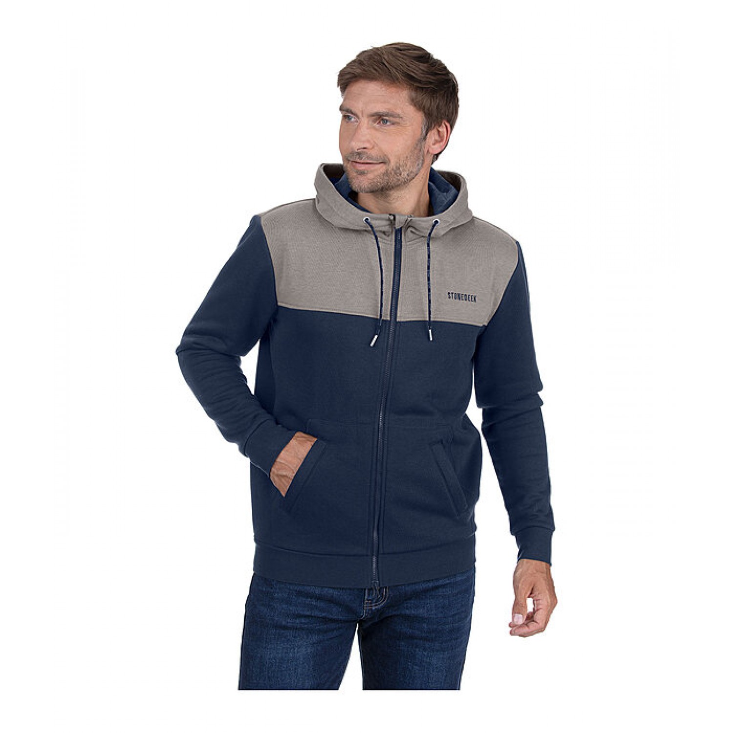 Удобная толстовка с капюшоном, контрастными вставками на груди и плечах, а также карманом-кенгуру, на молнии. Двусторонняя молния и логотип на груди. Регулируемый капюшон с завязками. Дышащая ткань. Состав: 65% полиэстер, 35% хлопок.