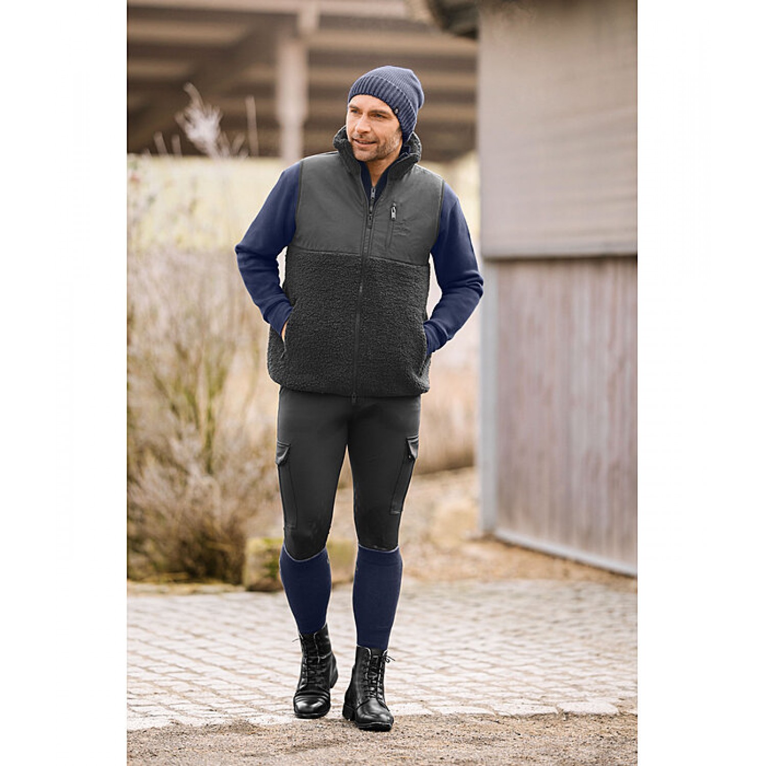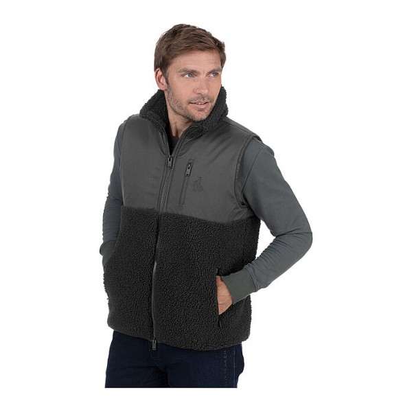 Уютный жилет из мягкого флиса с воротником-стойкой и водоотталкивающими и ветрозащитными вставками из софтшелла спереди и сзади. Двусторонняя молния спереди и два кармана для рук на молнии. 100% полиэстер.