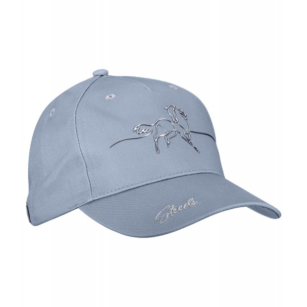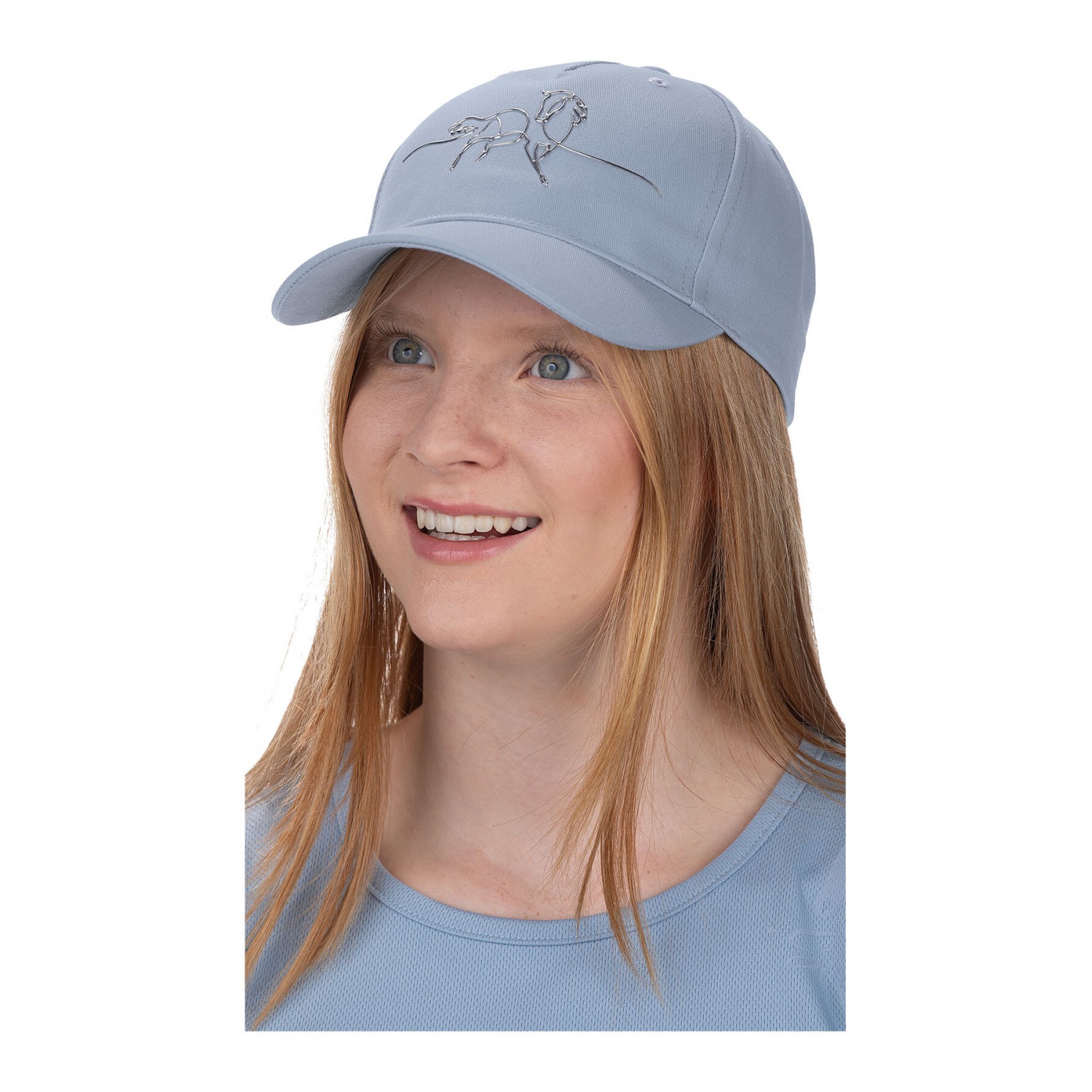 Регулируемая детская шапочка с дополнительным отверстием для косы сзади, чтобы хвост можно было носить выше под шапкой. Блестящая вышивка STEEDS на козырьке и красивый блестящий принт с лошадьми спереди. 100% хлопок.