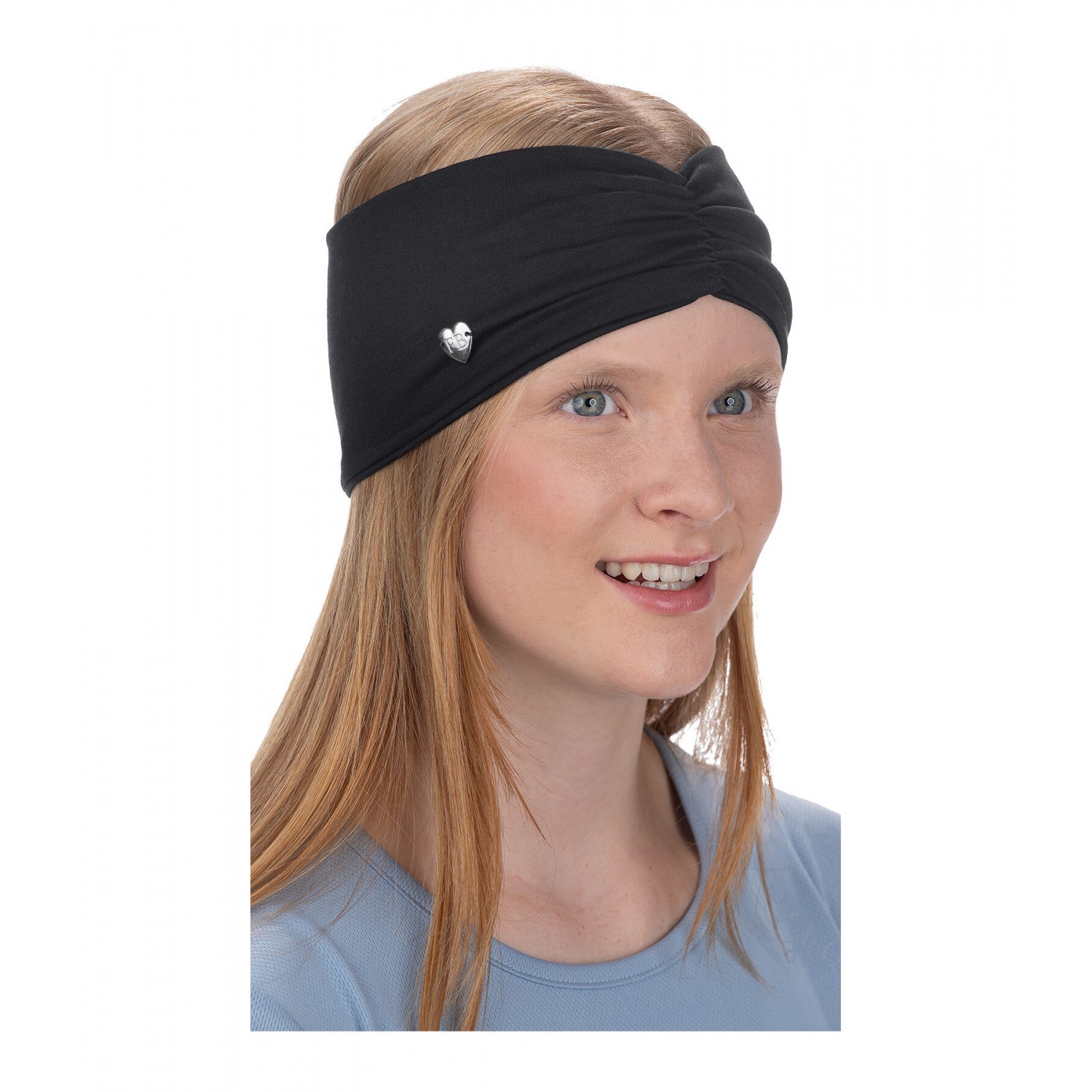 Классная повязка на голову для детей. Узел спереди и металлическое сердце FB из розового золота. 92% хлопок, 8% эластан.
