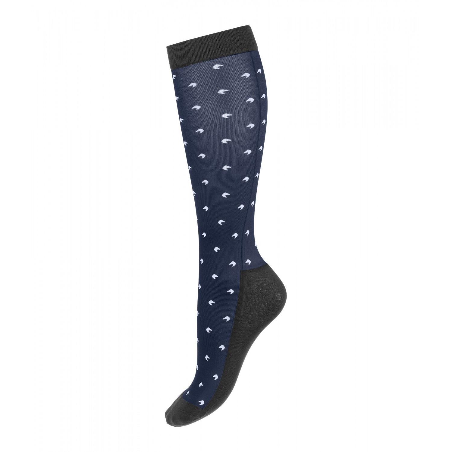 Эти очень тонкие детские гольфы с мягкой стелькой специально разработаны для использования в сапогах для верховой езды и облегчают их надевание. Имеют красивый принт по всей поверхности. Состав: 55% хлопок, 35% полиэстер, 10% эластан.