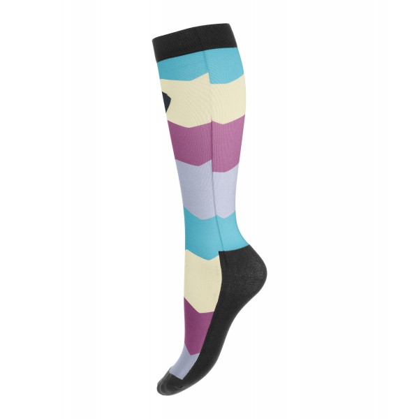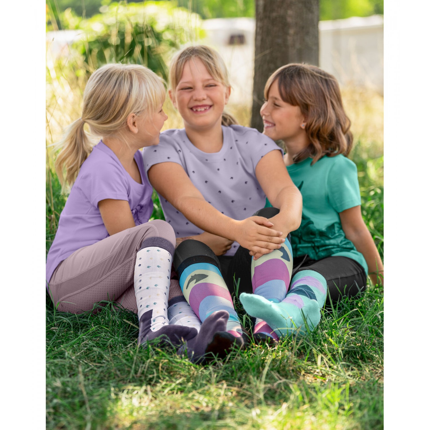 Эти очень тонкие детские гольфы с мягкой стелькой специально разработаны для использования в сапогах для верховой езды и облегчают их надевание. Имеют красивый принт по всей поверхности. Состав: 55% хлопок, 35% полиэстер, 10% эластан.
