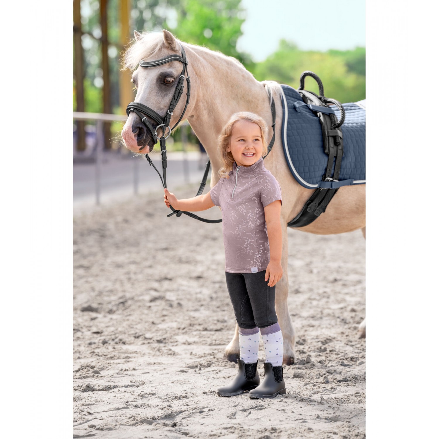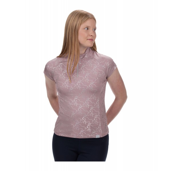 Незаменимая вещь для любителей лошадей этим летом! Легкая спортивная футболка с милым принтом в виде лошадей по всей поверхности. Дышащая, быстросохнущая, с коротким рукавом, застежкой-молнией и воротником-стойкой. Защита от УФ-излучения (UPF 30+). 88% полиэстер, 12% эластан.