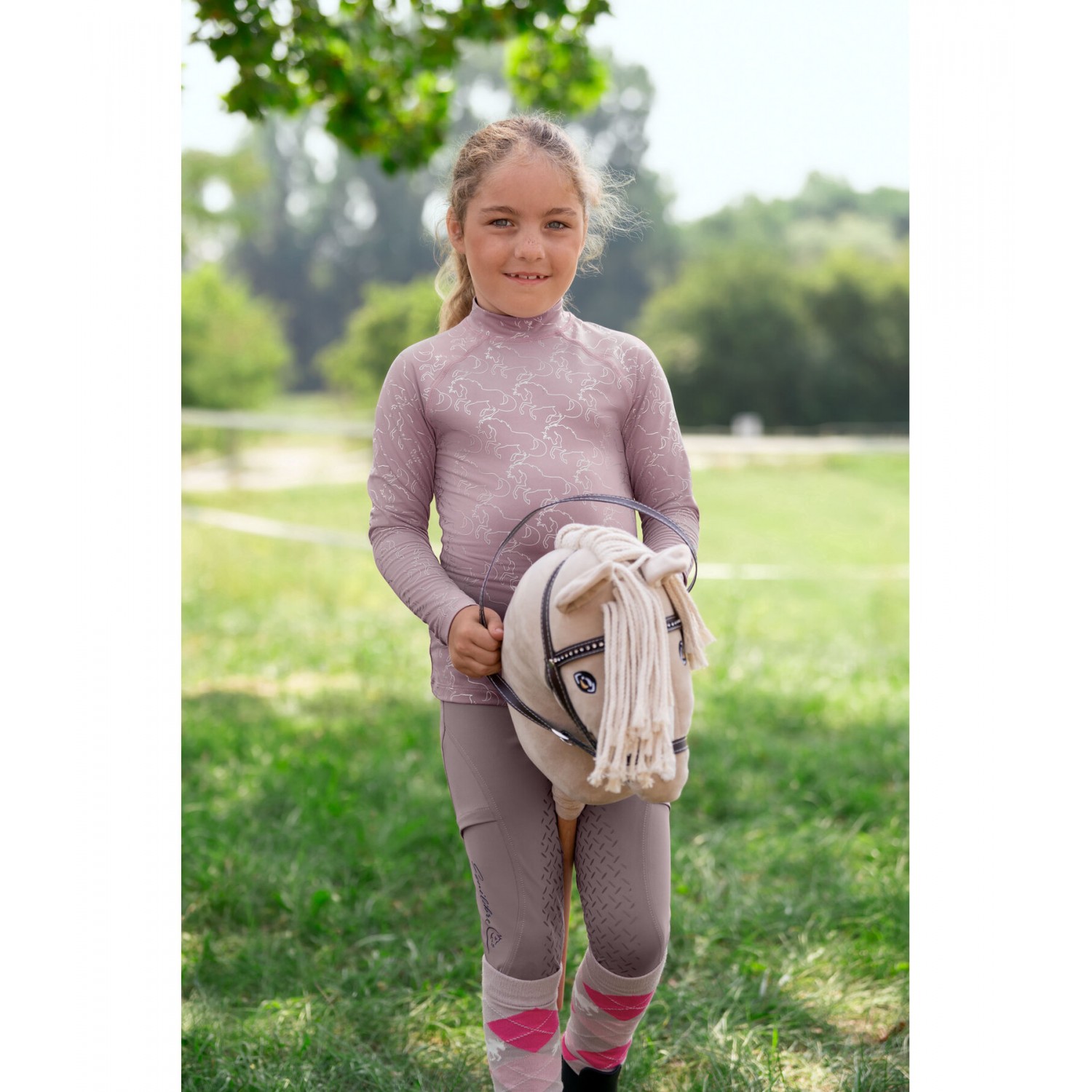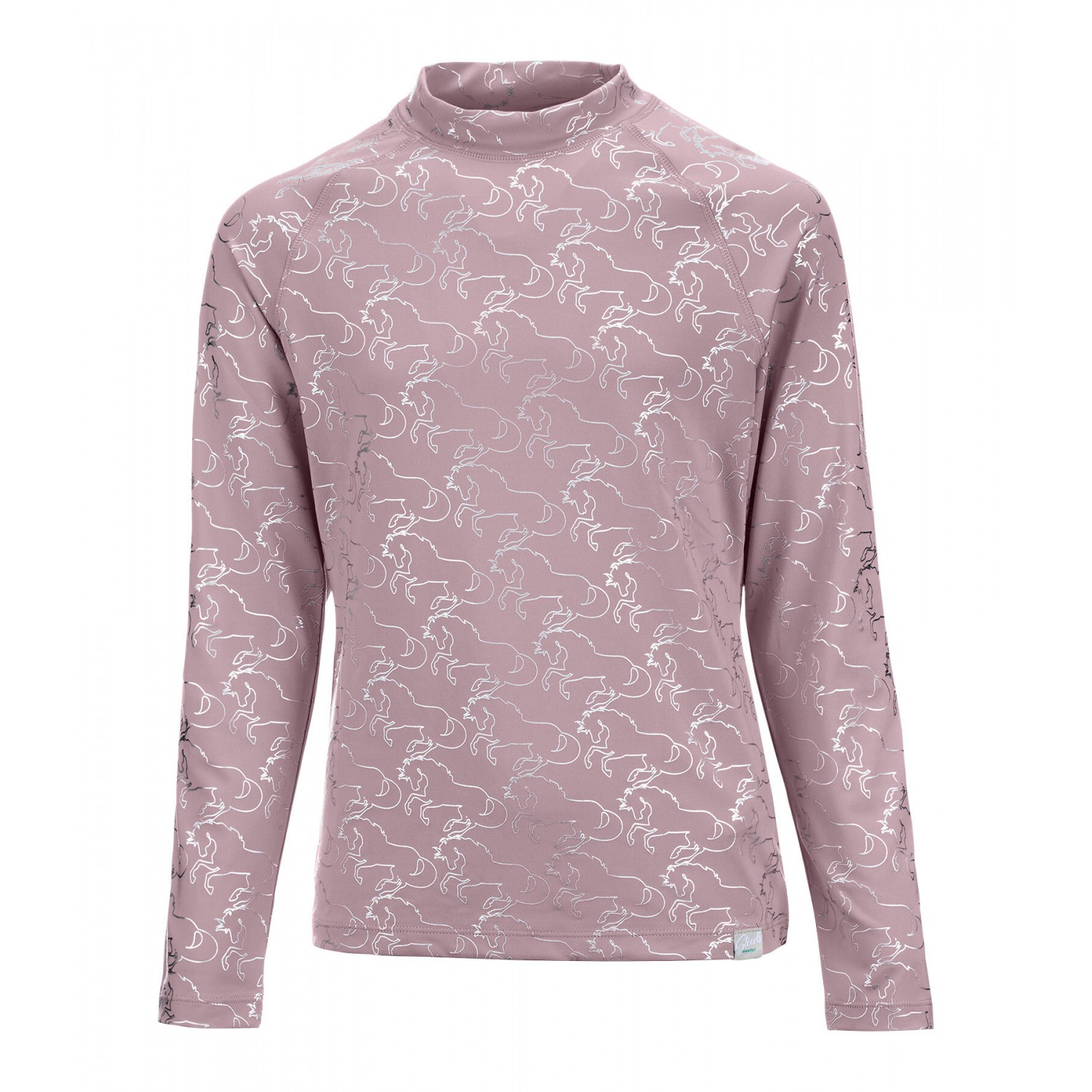 Абсолютный must-have на лето: дышащая и быстросохнущая функциональная футболка для детей с длинными рукавами, защитой от ультрафиолета (UPF 30+), воротником-стойкой и рукавами реглан. С милым принтом в виде лошади по всей поверхности. 88% полиэстер, 12% эластан.