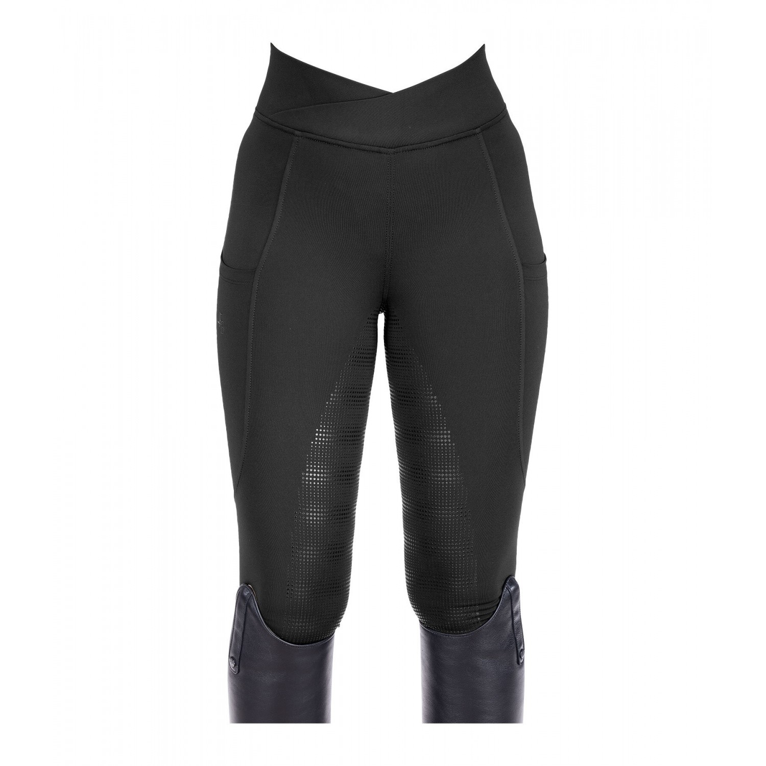 Модные, дышащие детские леггинсы для верховой езды с силиконовой полной леей. Быстросохнущая, эластичная ткань, растягивающаяся в четырех направлениях, удобный перекрестный пояс, логотип на спине и штанине, 2 кармана для мобильных телефонов. 78% полиэстер, 22% эластан.
