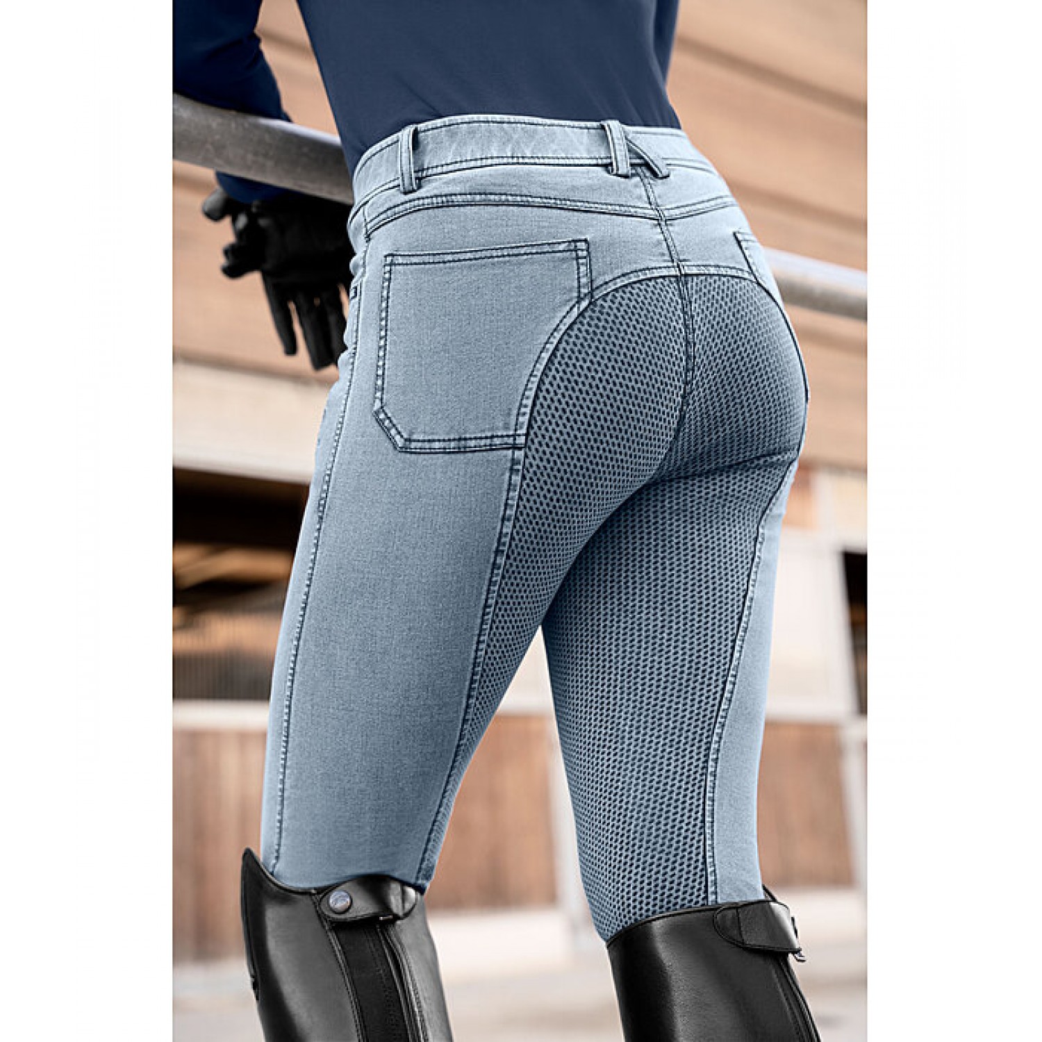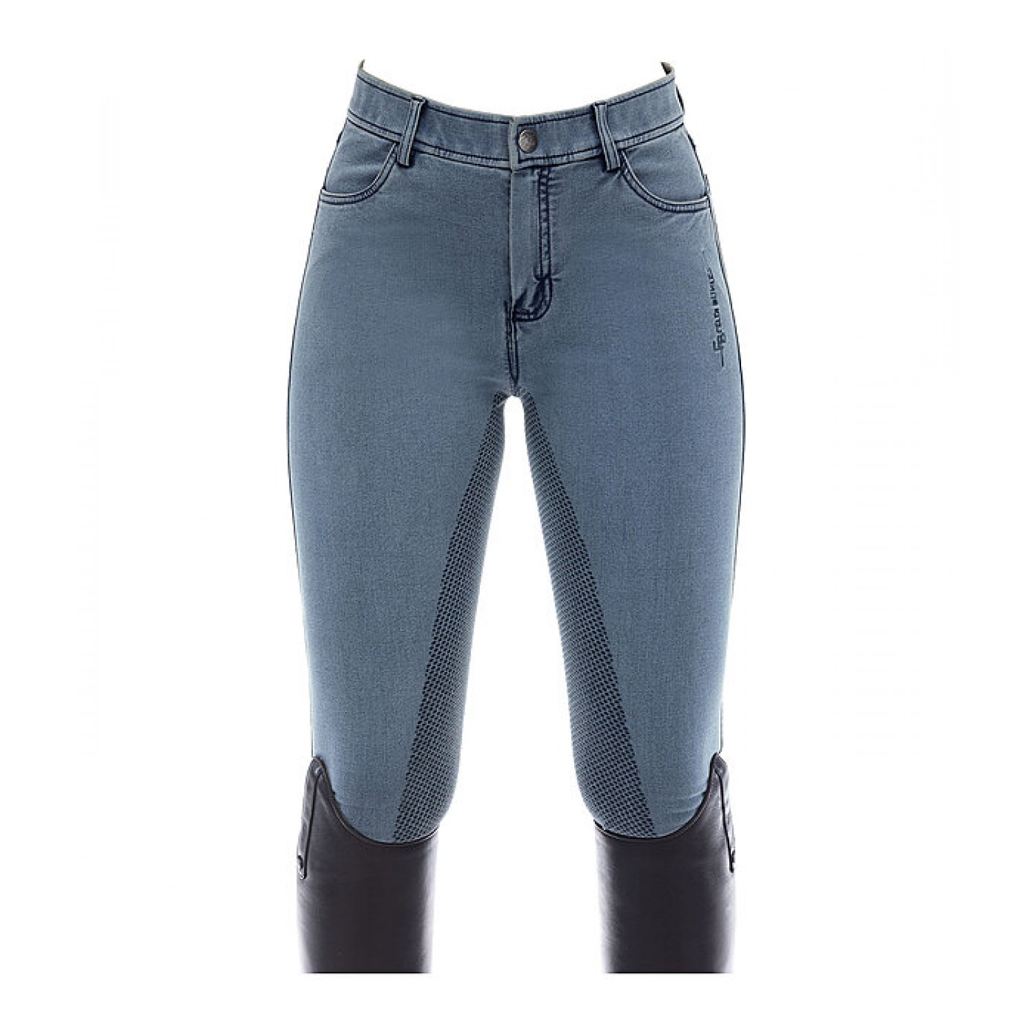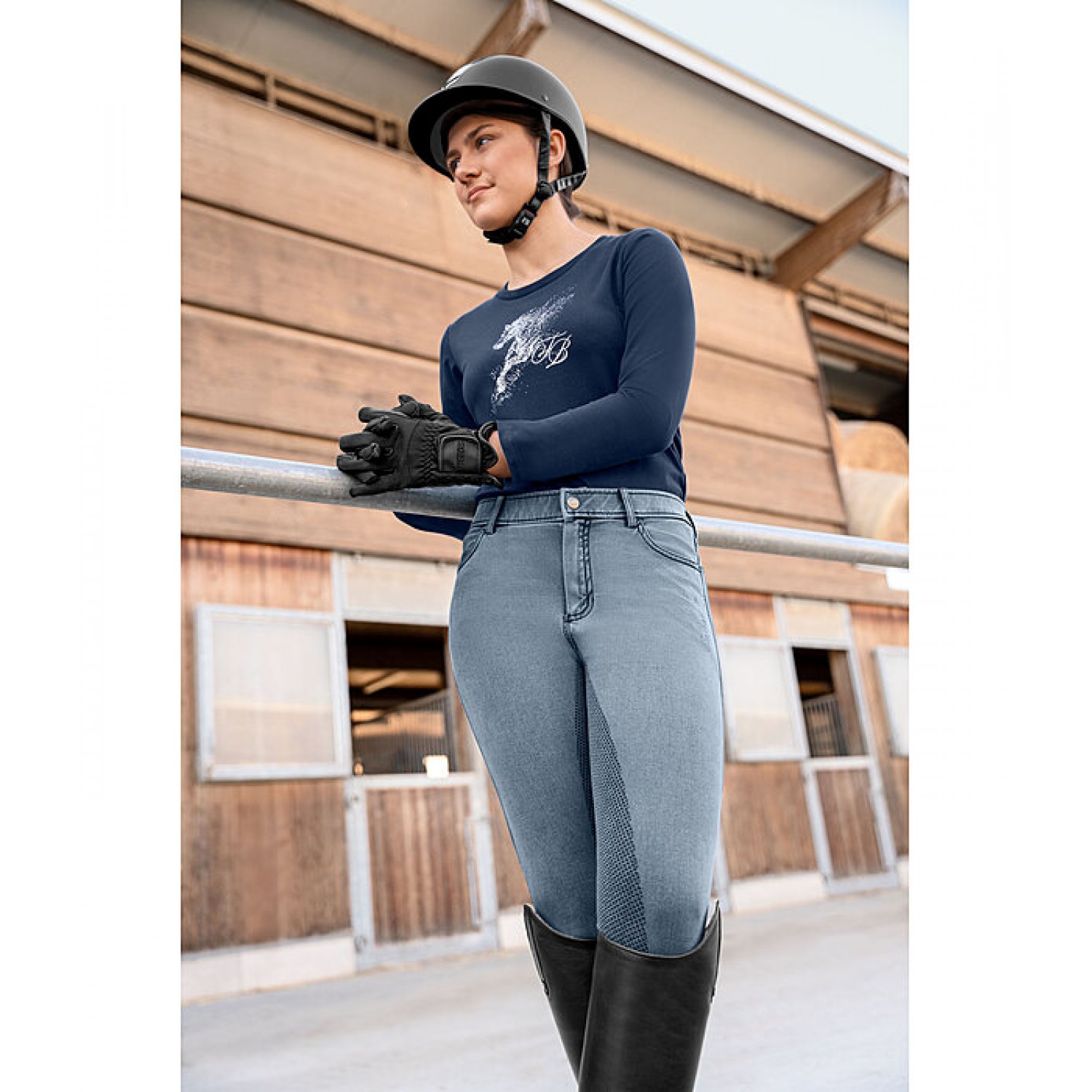 Удобные детские джинсовые бриджи для верховой езды. Полна силиконовая лея. Стильный пояс со шлевками для ремня, два кармана спереди и сзади, без коленных швов, вышивка Felix Bühler. Состав: 60% хлопок, 24% полиэстер, 10% вискоза, 6% эластан.