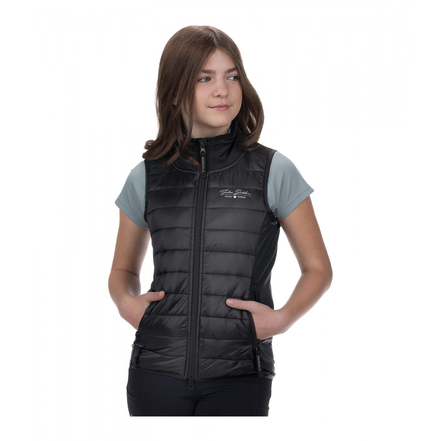 Легкий, элегантный детский жилет для верховой езды из ветрозащитного нейлона с эластичными вставками по бокам, обеспечивающими оптимальную свободу движений и идеальную посадку. Имеет воротник-стойку, подкладку с двусторонней застежкой-молнией спереди, два передних кармана на молнии и вышивку Felix Bühler на груди. 100% нейлон, эластичные вставки: 95% полиэстер, 5% эластан.