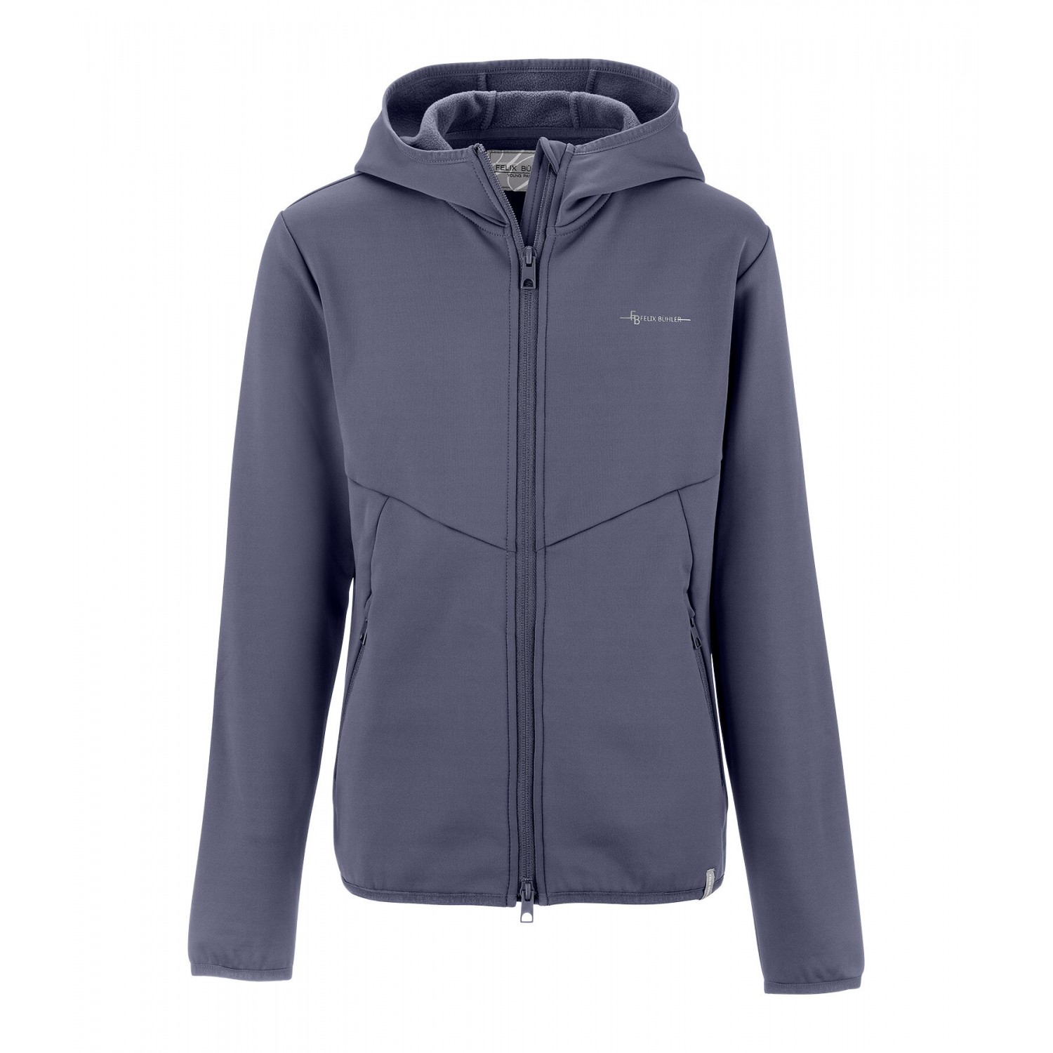 Спортивная, легкая детская куртка с капюшоном и модным кроем. Логотип на груди. Дышащая и быстросохнущая, с подкладкой, двусторонней молнией спереди и защитой подбородка, а также двумя передними карманами на молнии. 95% полиэстер, 5% эластан.