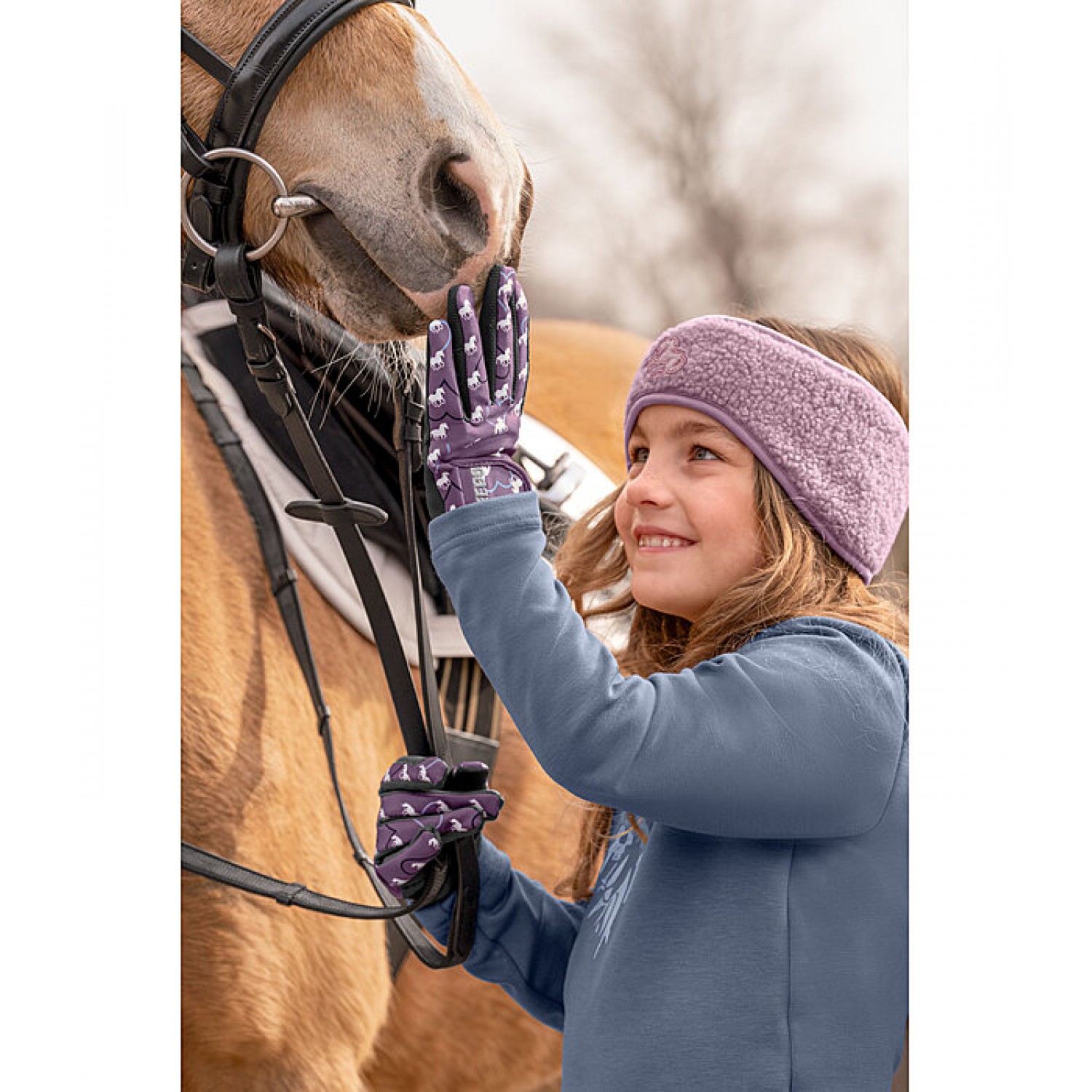 Тёплые, дышащие детские зимние перчатки со светоотражающим принтом лошади и светоотражающим логотипом на липучке. Внешний материал: 90% полиэстер, 10% эластан; подкладка: 100% полиэстер